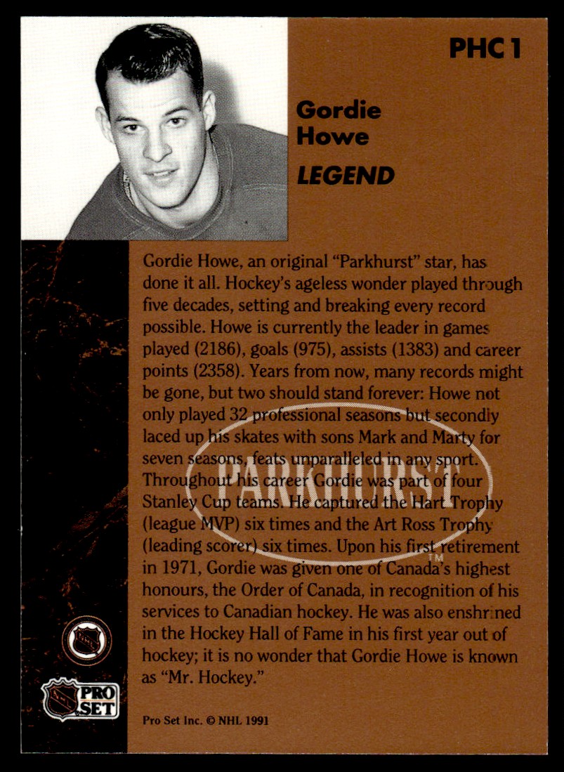 | 1991-92 Parkhurst Collectibles Gordie Howe Detroit Red Wings #PHC1 R26 | ||||||||||||||||||