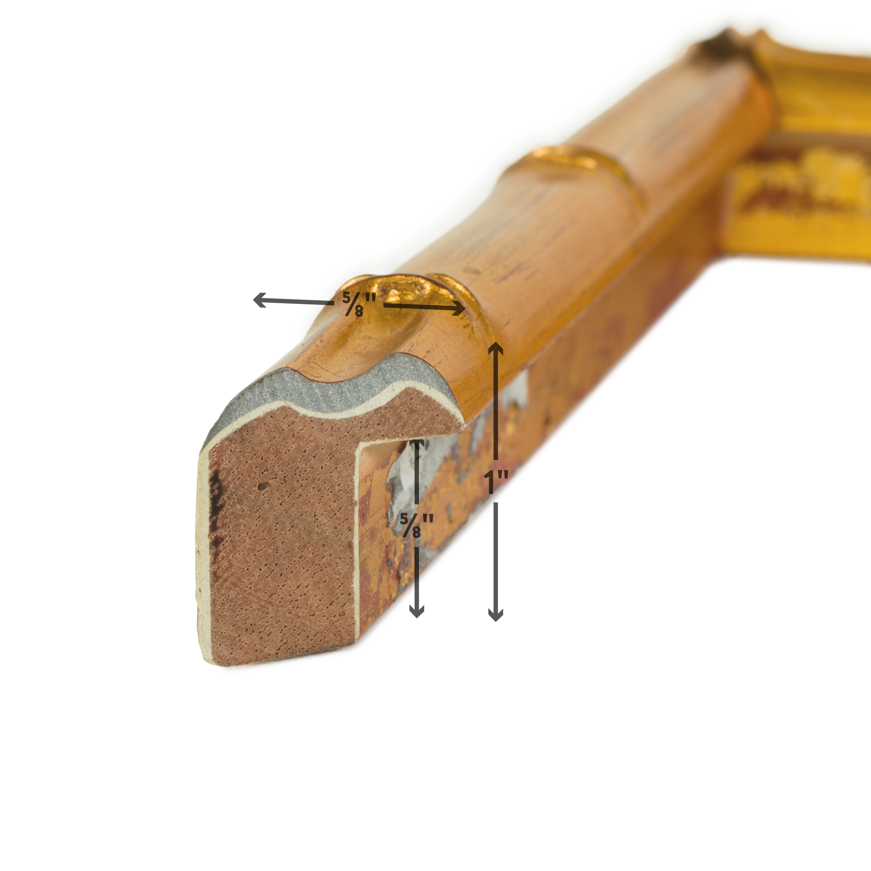 A unique faux bamboo finish and thin profile give this frame a striking presence in any room. The Vintage Bamboo picture frame offers a winning combination of quality and finish. This moulding features a solid wood core encased in a polished, composite finish. With soft ridges, valleys and shadowing throughout—the Vintage Bamboo's tropical styling can turn an ordinary print into an extraordinary print.