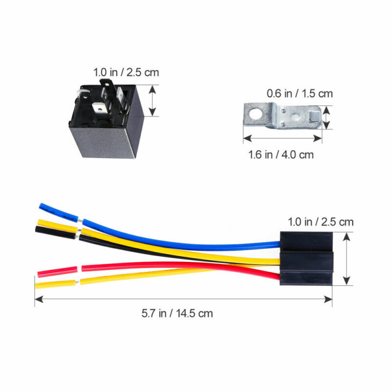 *100% Brand new and high quality. *5 pin SPDT 12V, 40 Amp electrical relay with pre-wired relay socket harness. *Relay comes with mounting tab for easy installation. *The interlocking design on the harness allows multiple harnesses to be coupled together for organization and ease of setup. *Heavy-duty impact molded relay socket with 5 wires. *This relay has a universal application and can be used in automotive setups, car sound systems, security systems, and various other applications.