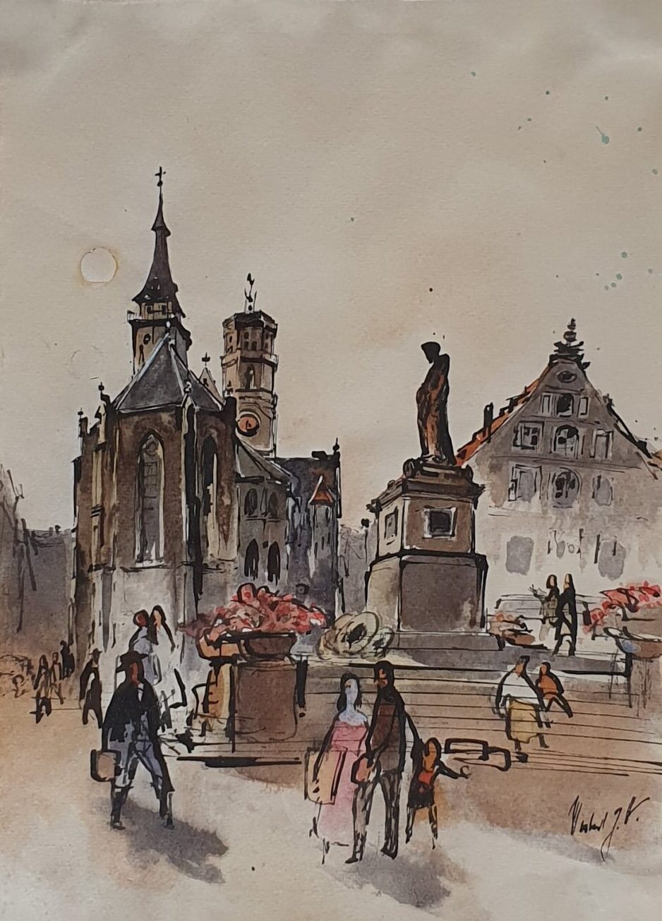 „Stuttgarter Platz“, Berlin, 1955, Norbert Gerd Hartmann, Gemälde/Aquarell, gerahmt