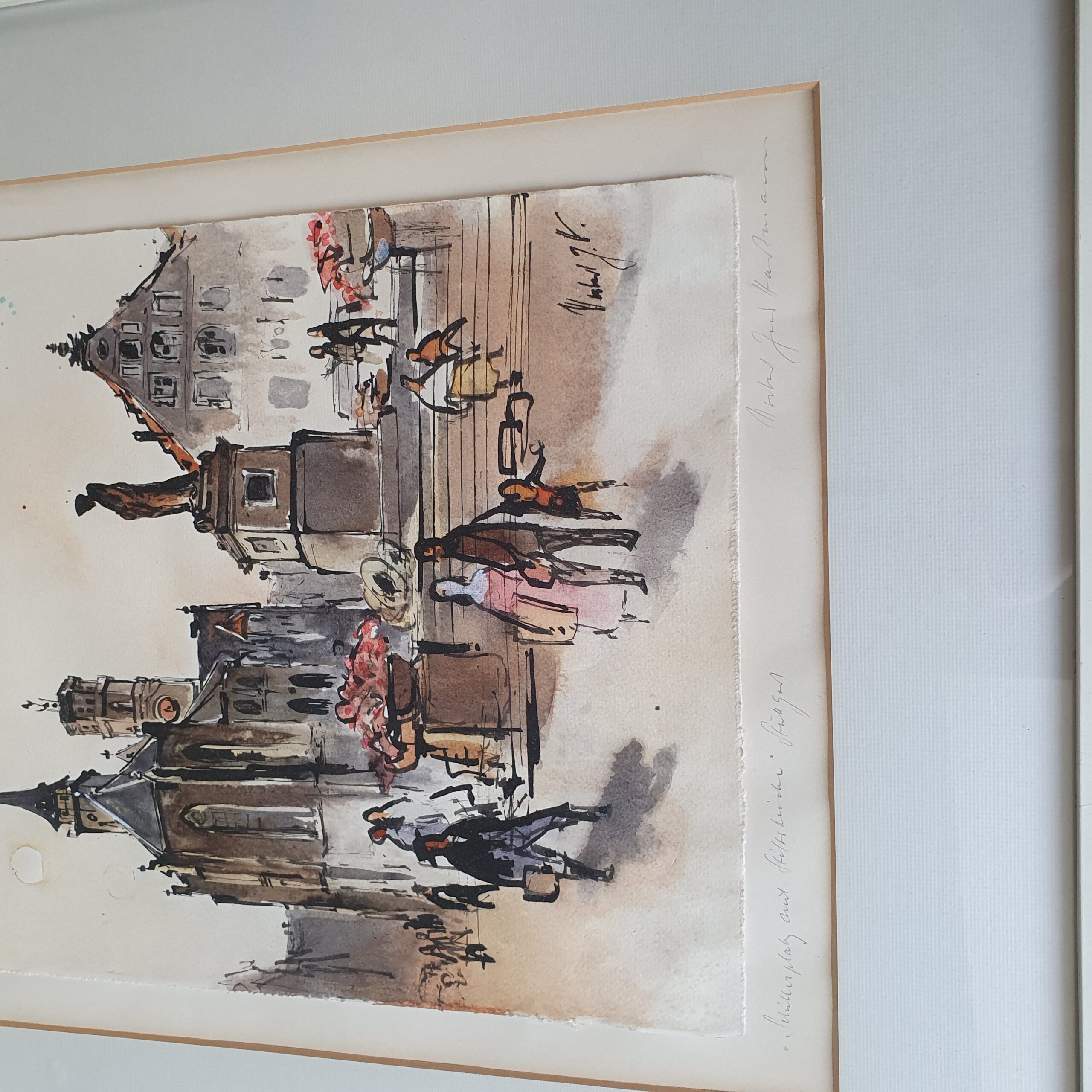 Zeichnungen und Werke auf Papier weisen zumeist Risse, Knicke oder Stockflecken auf. Sollten Sie aufgrund der Fotos unsicher sein, melden Sie sich gerne.