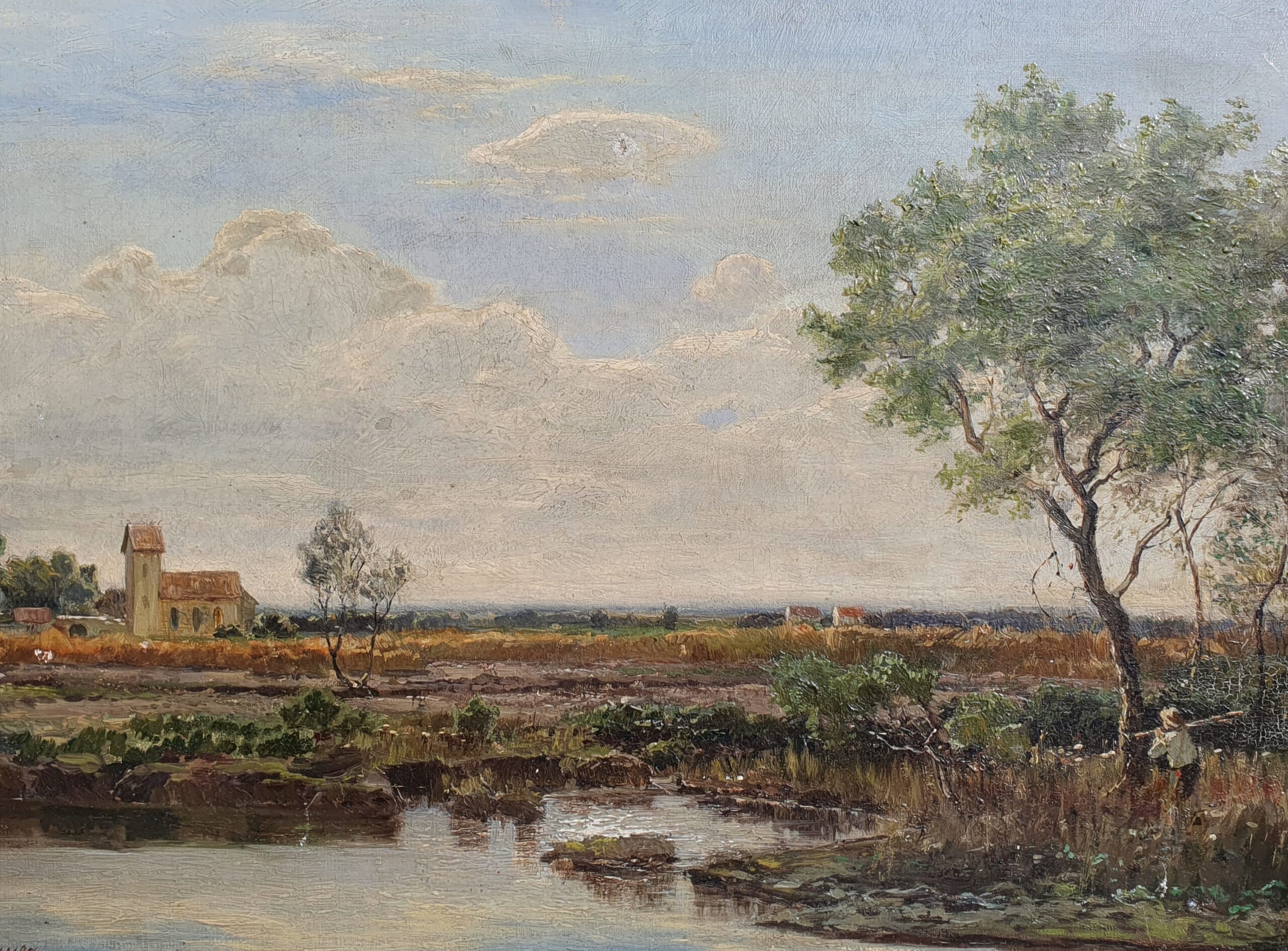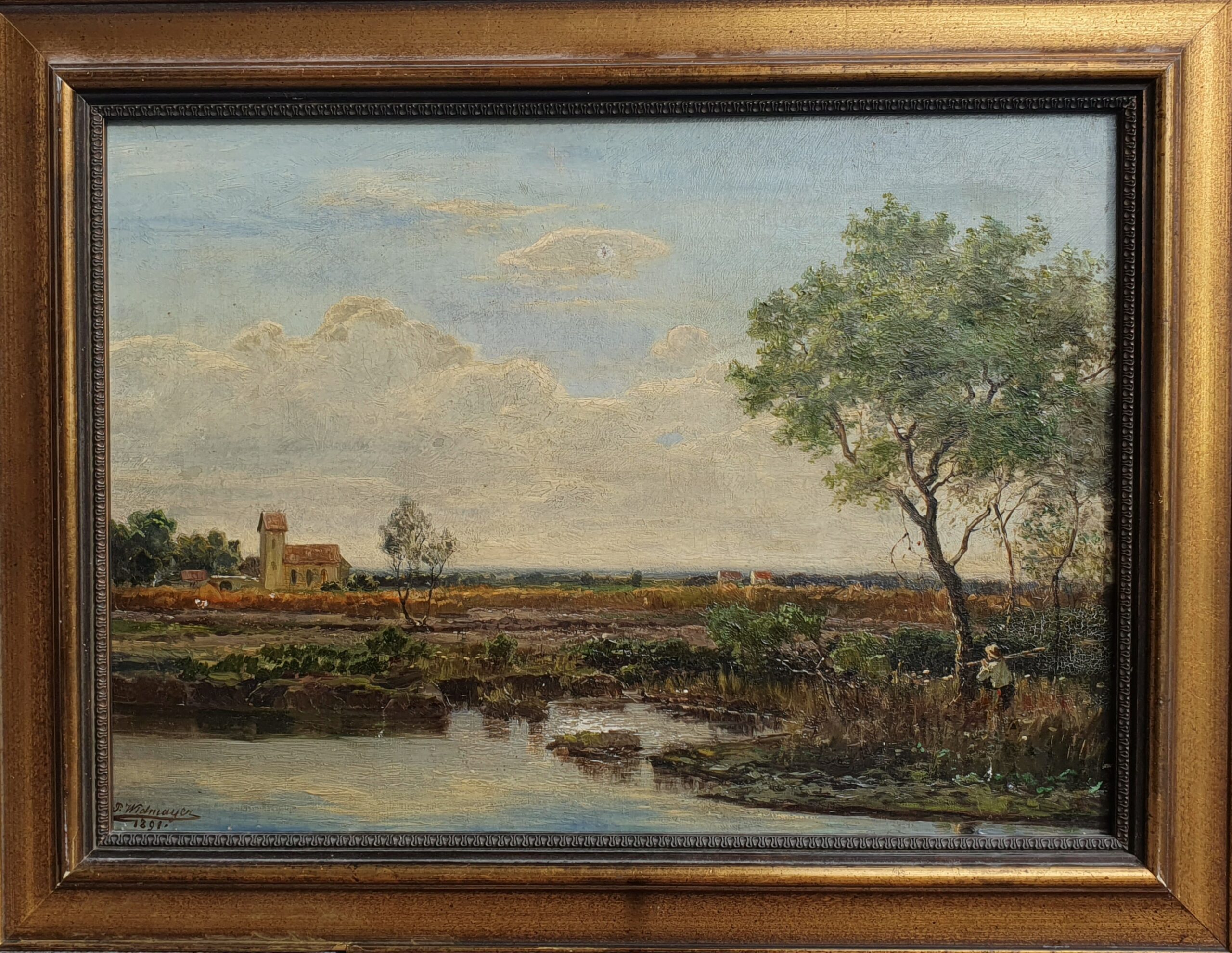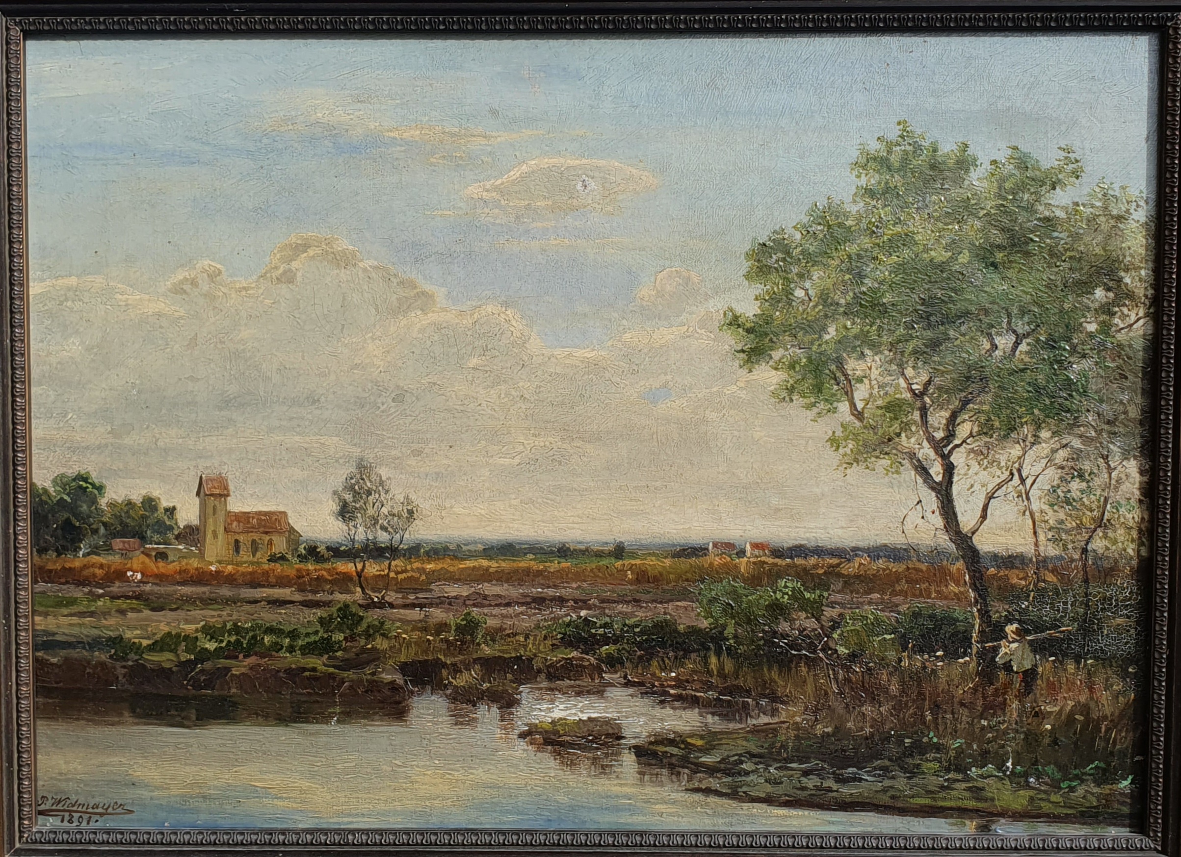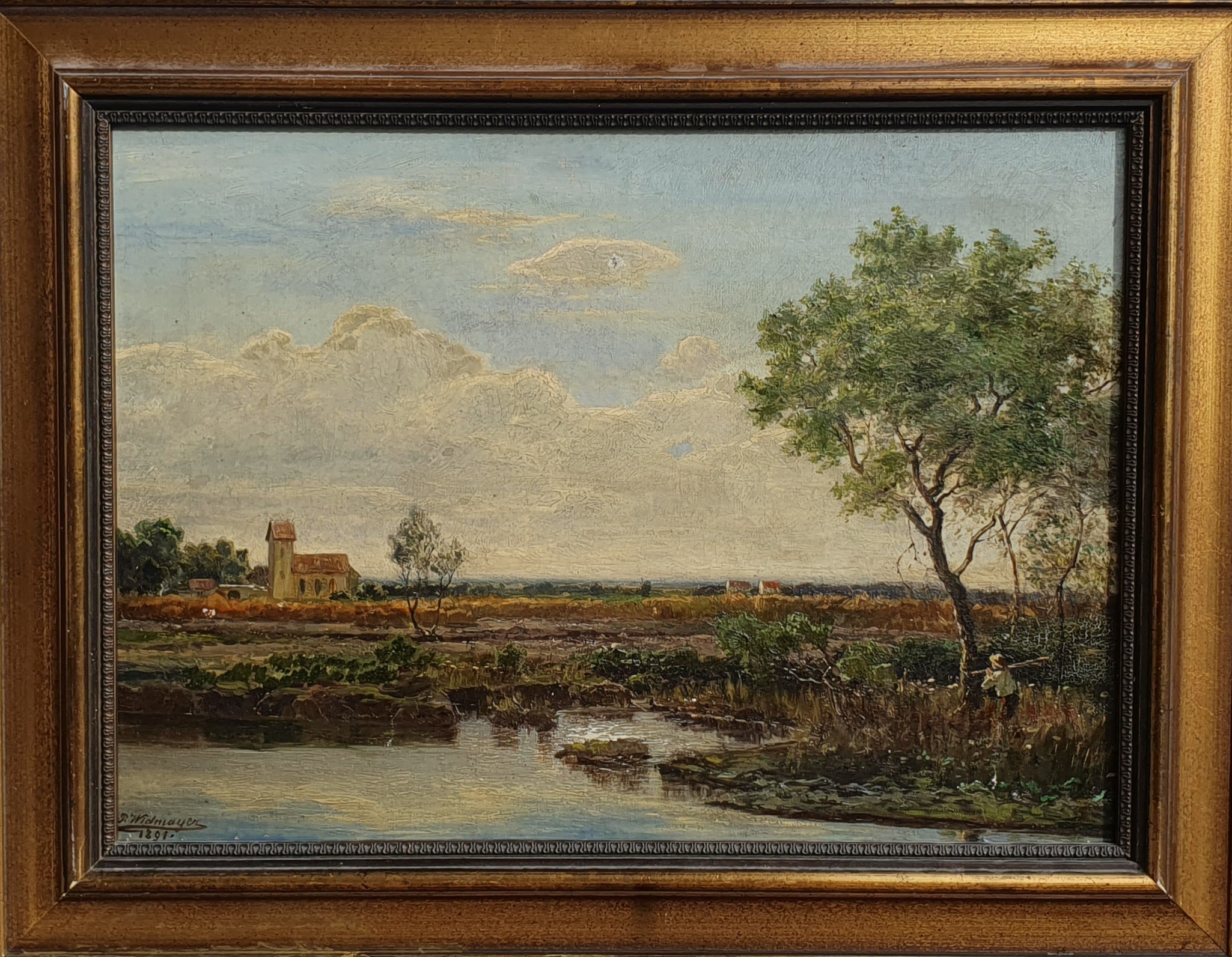 Idyllische Landschaft mit See und Angler, Paul WIDMAYER, 1891, Ölgemälde auf Leinwand
