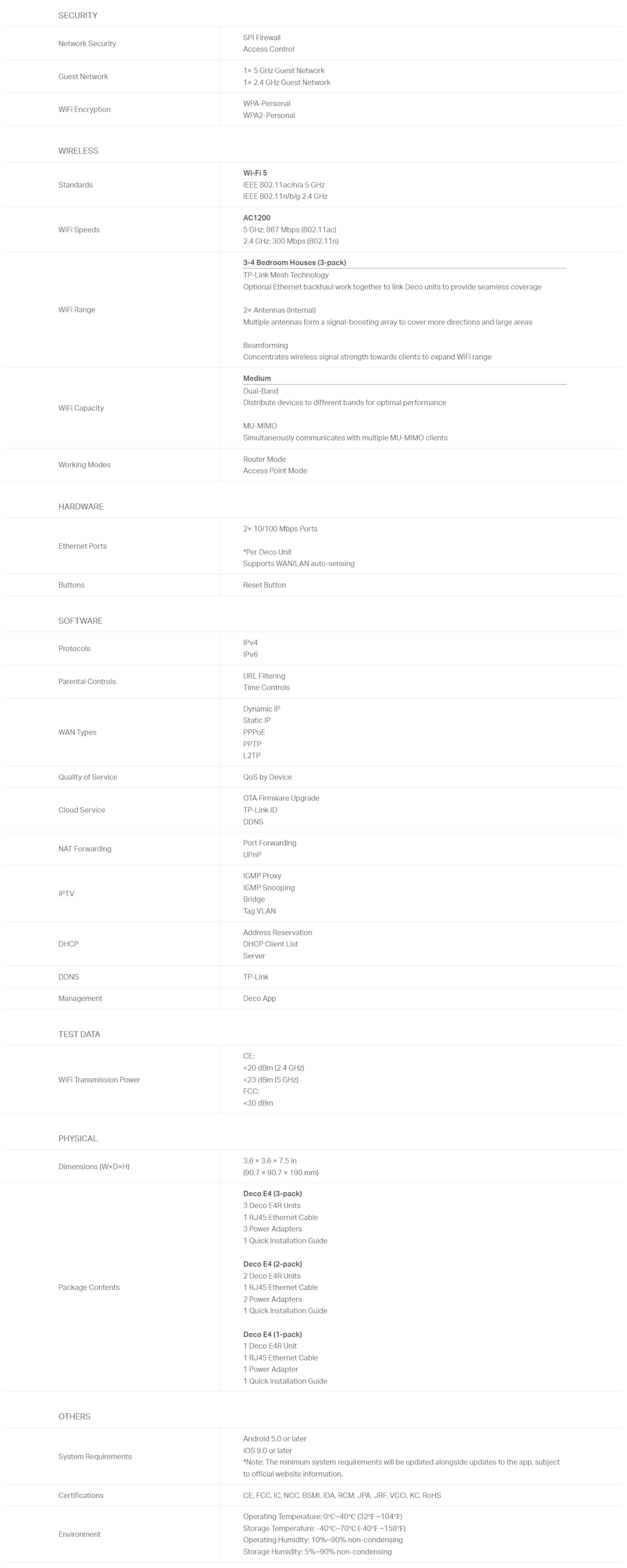 Product Specifications