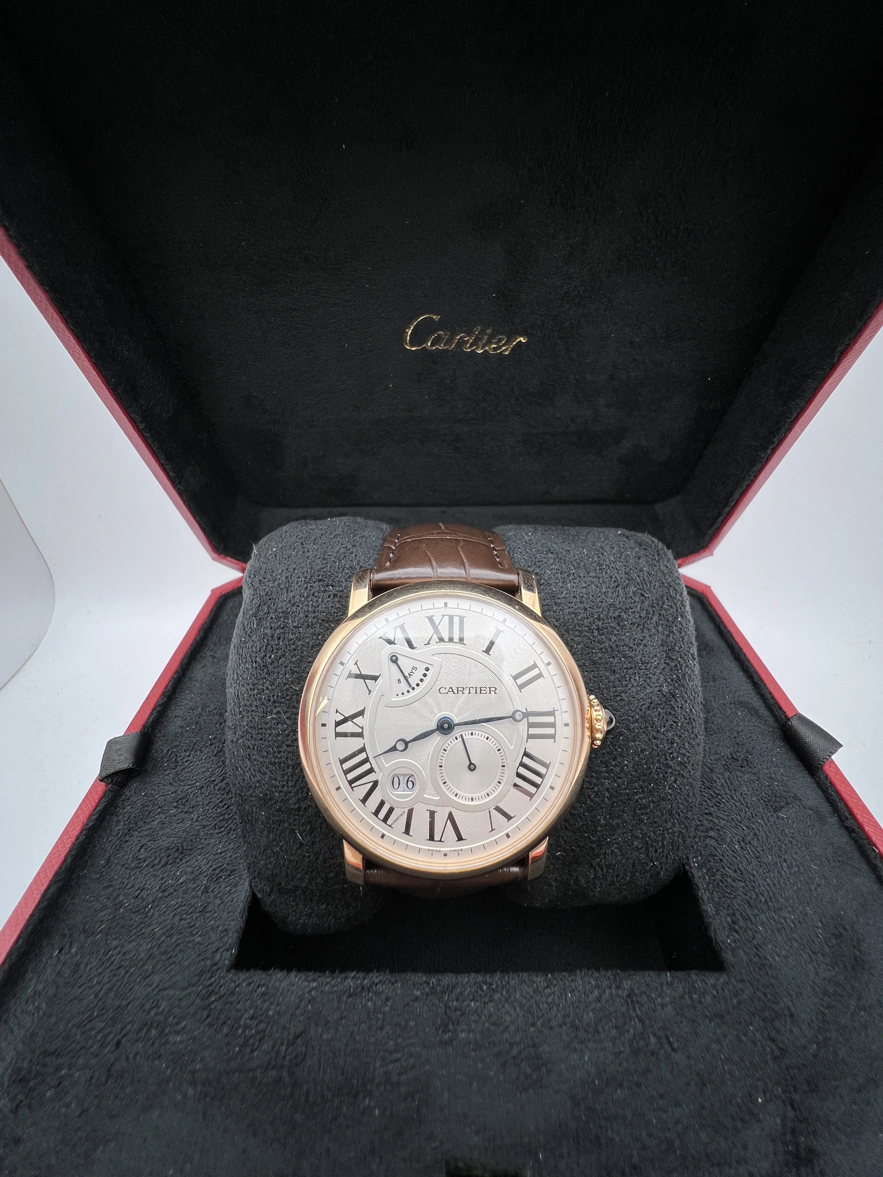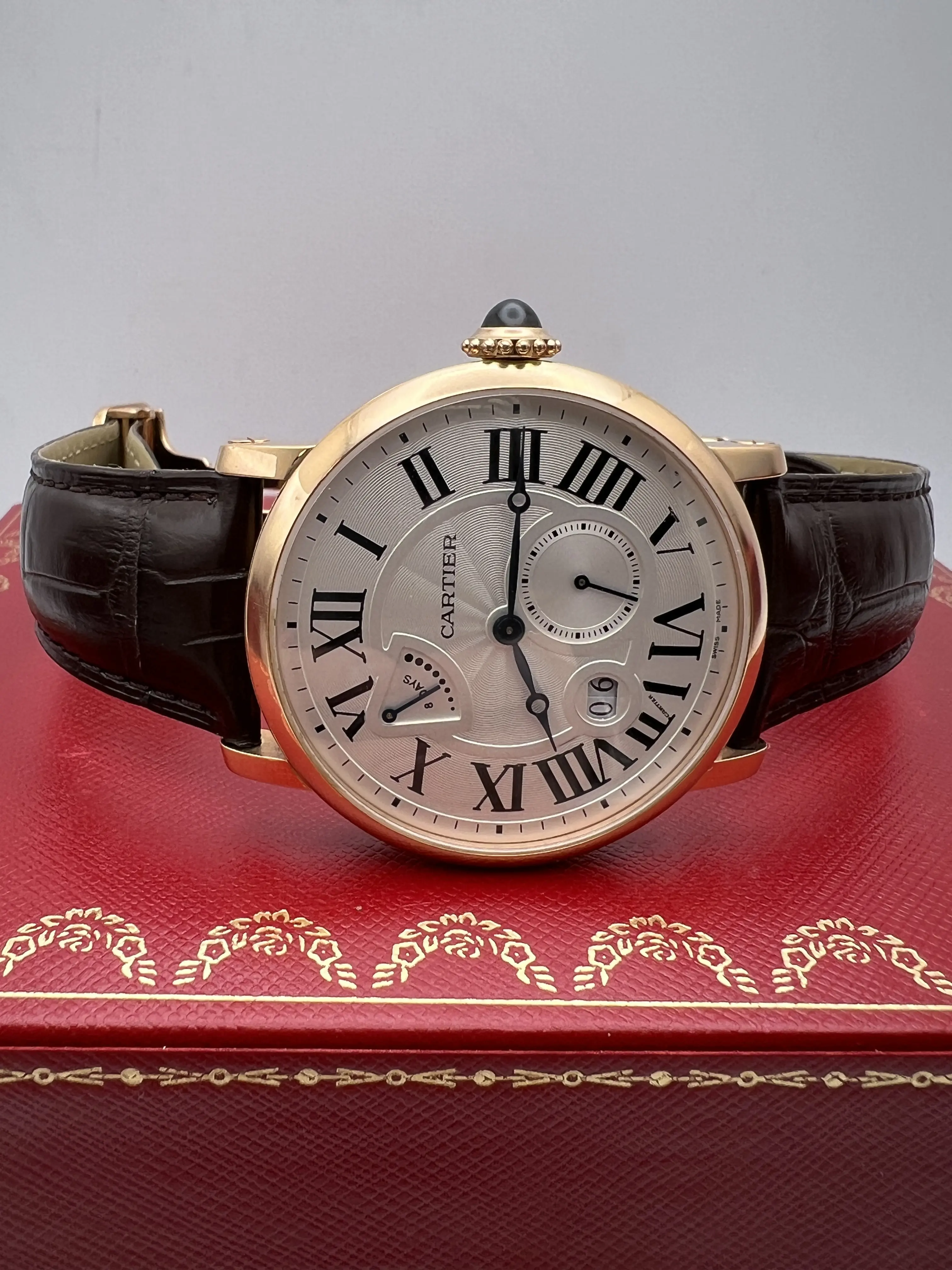Cartier Rotonde 42mm 18K Rose Gold Silver Dial Mens Hand Wind Watch W1556203 Box