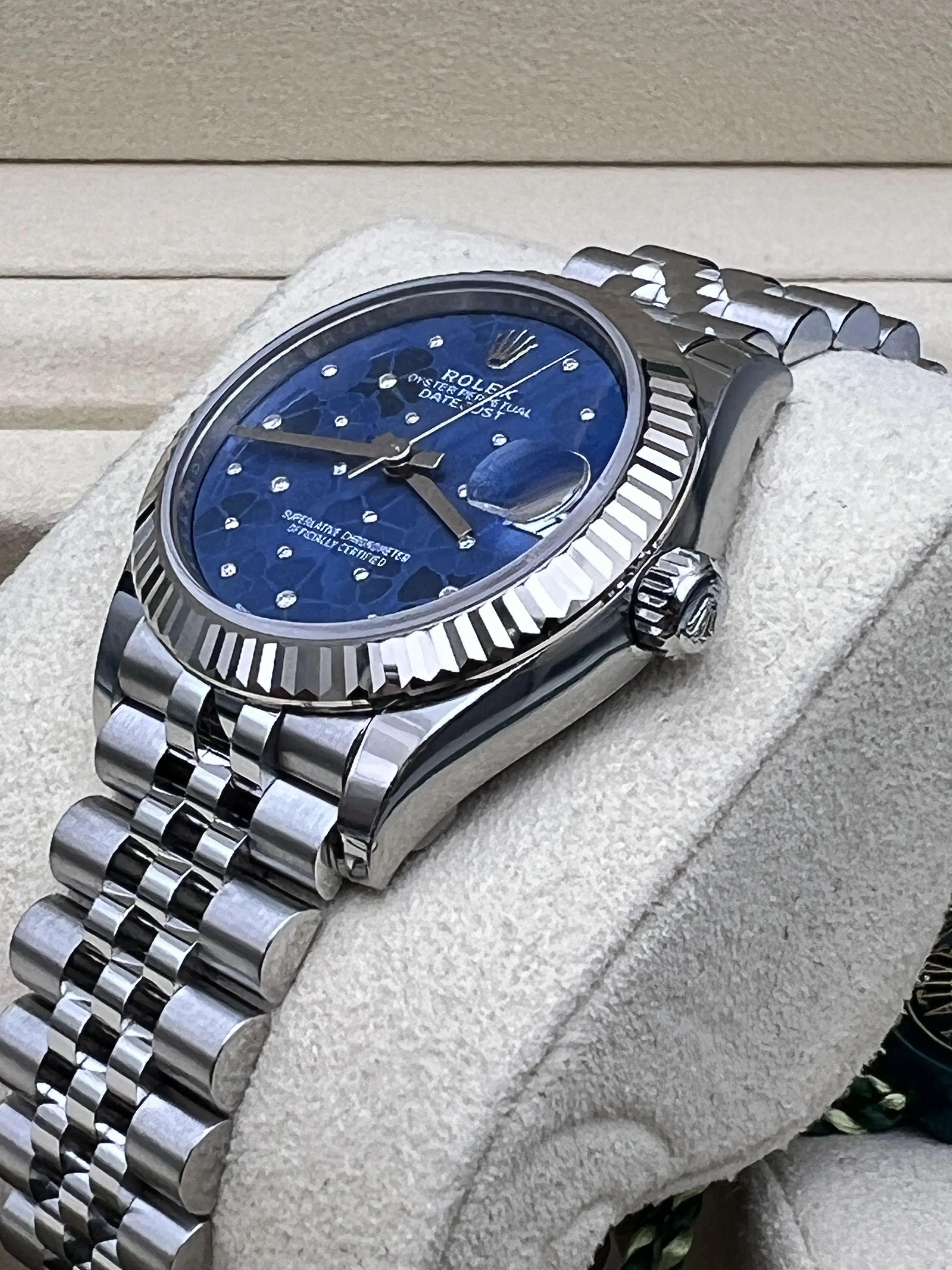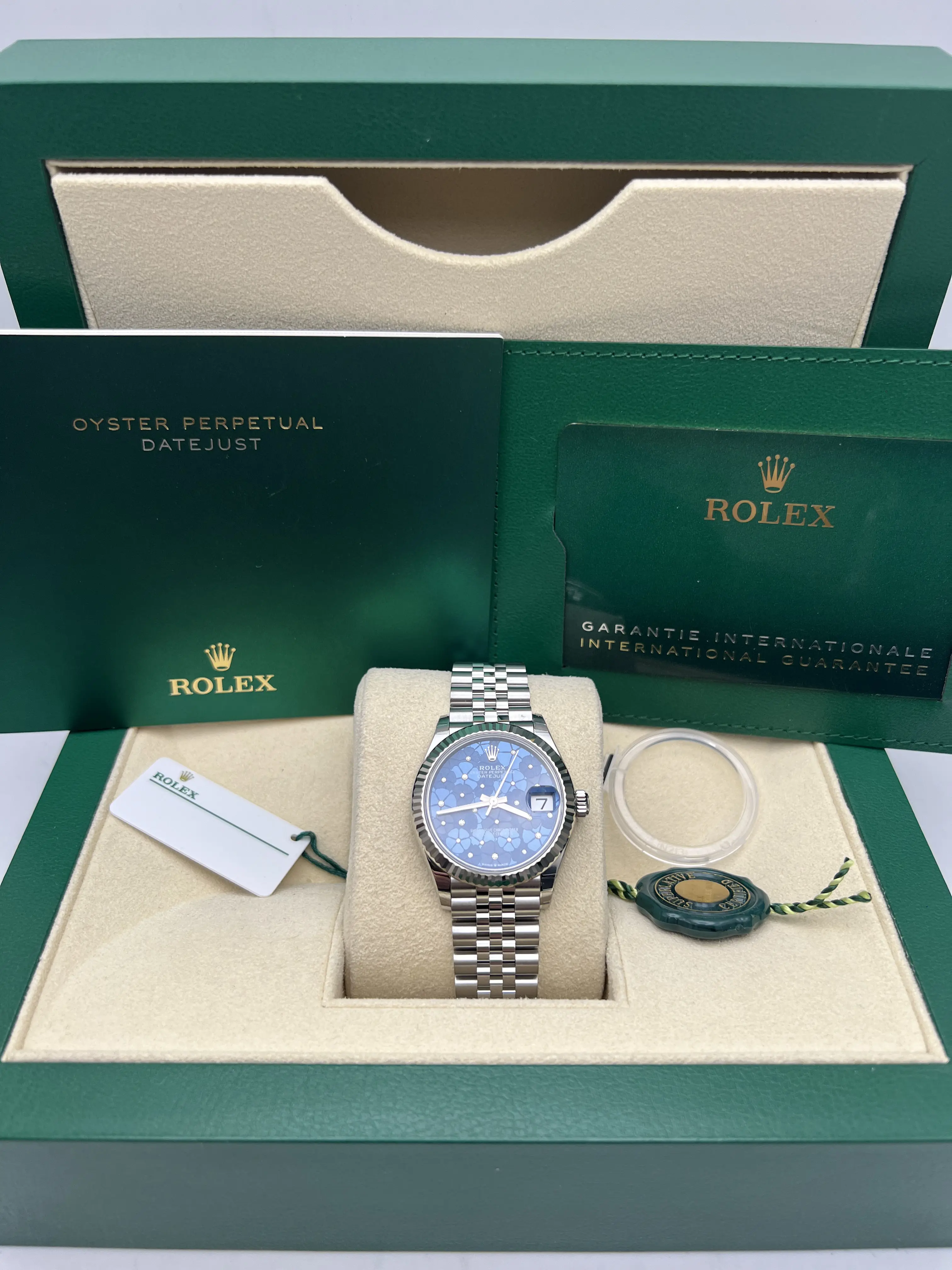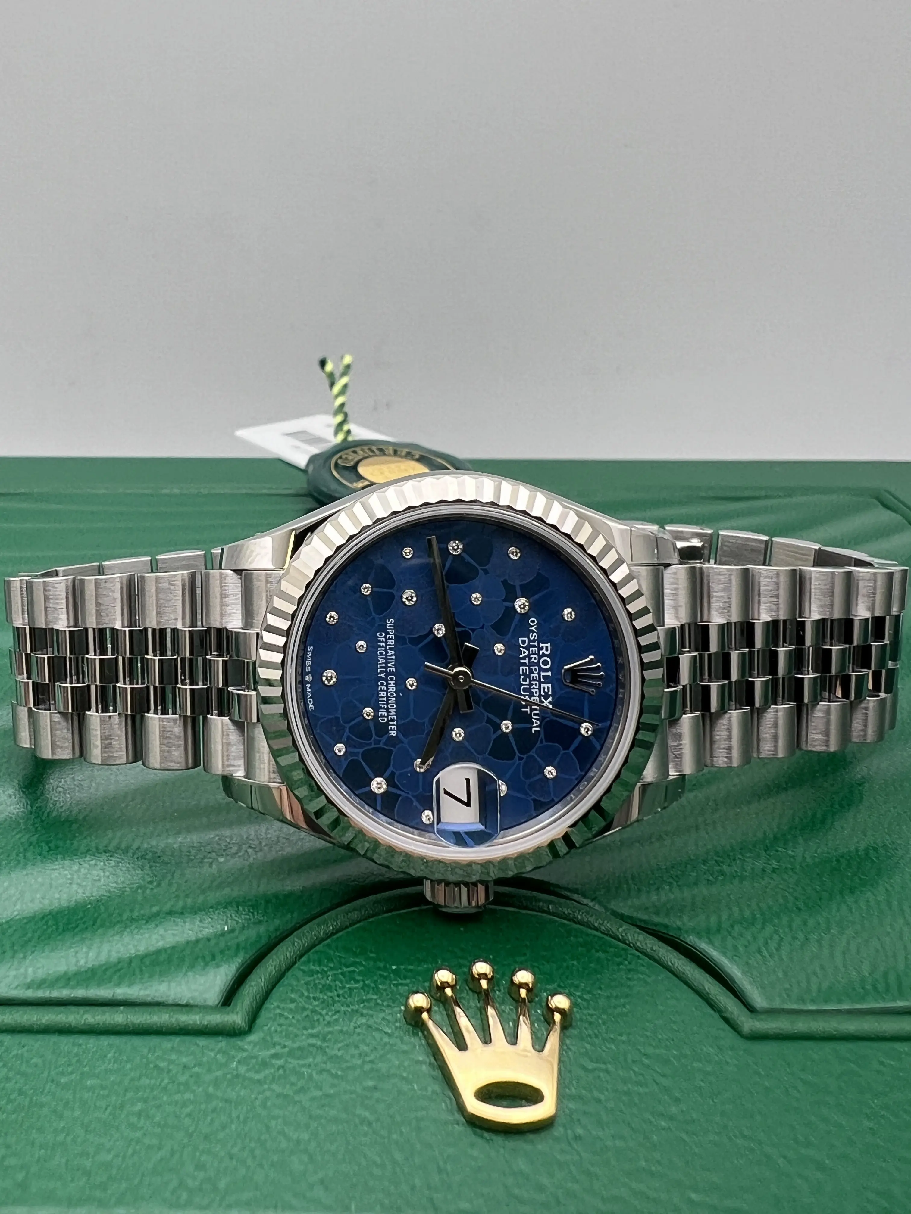 2024 Rolex Datejust 31 278274 18K Fluted Blue Floral Motif Diamond Jubilee B&P