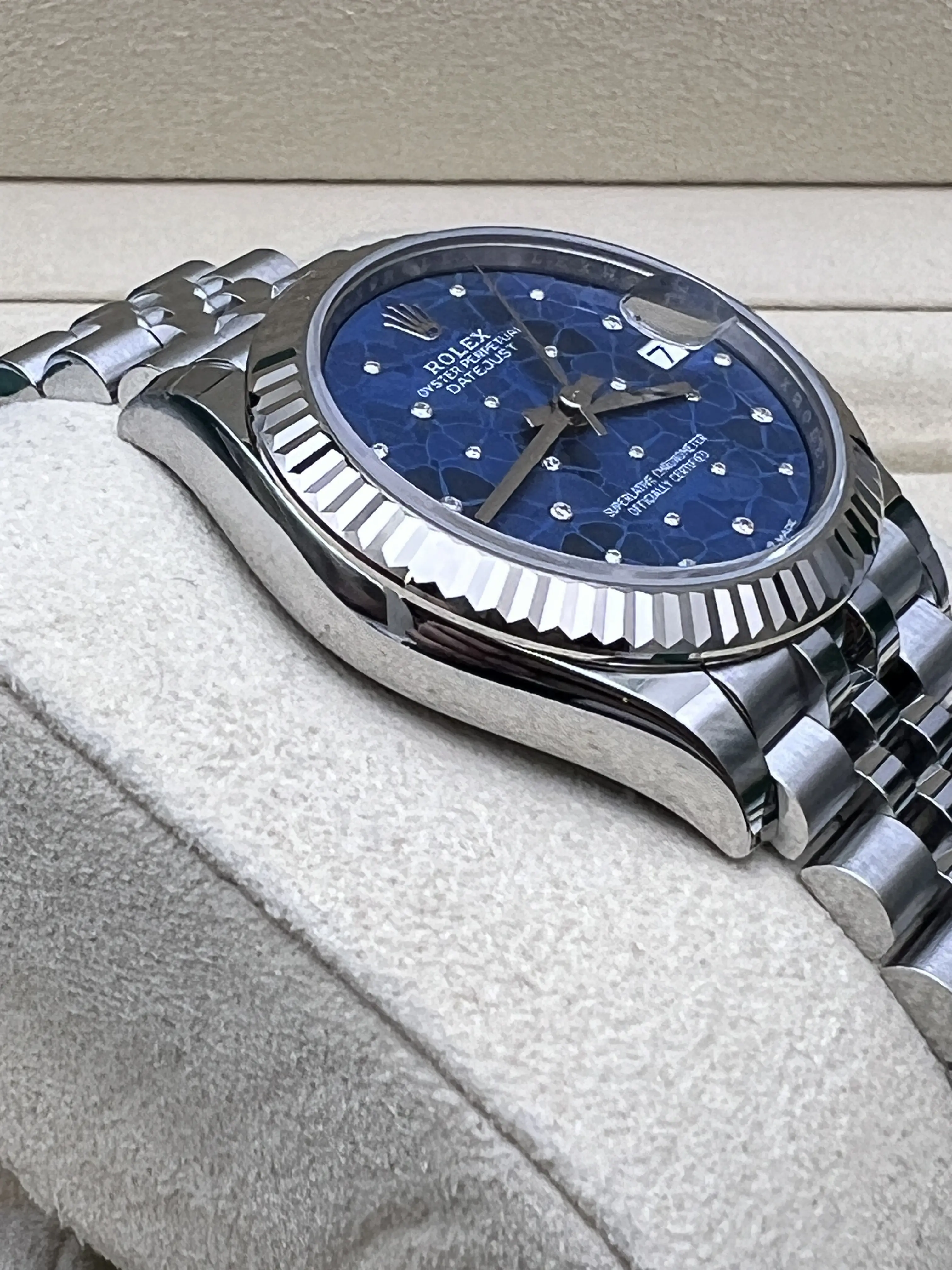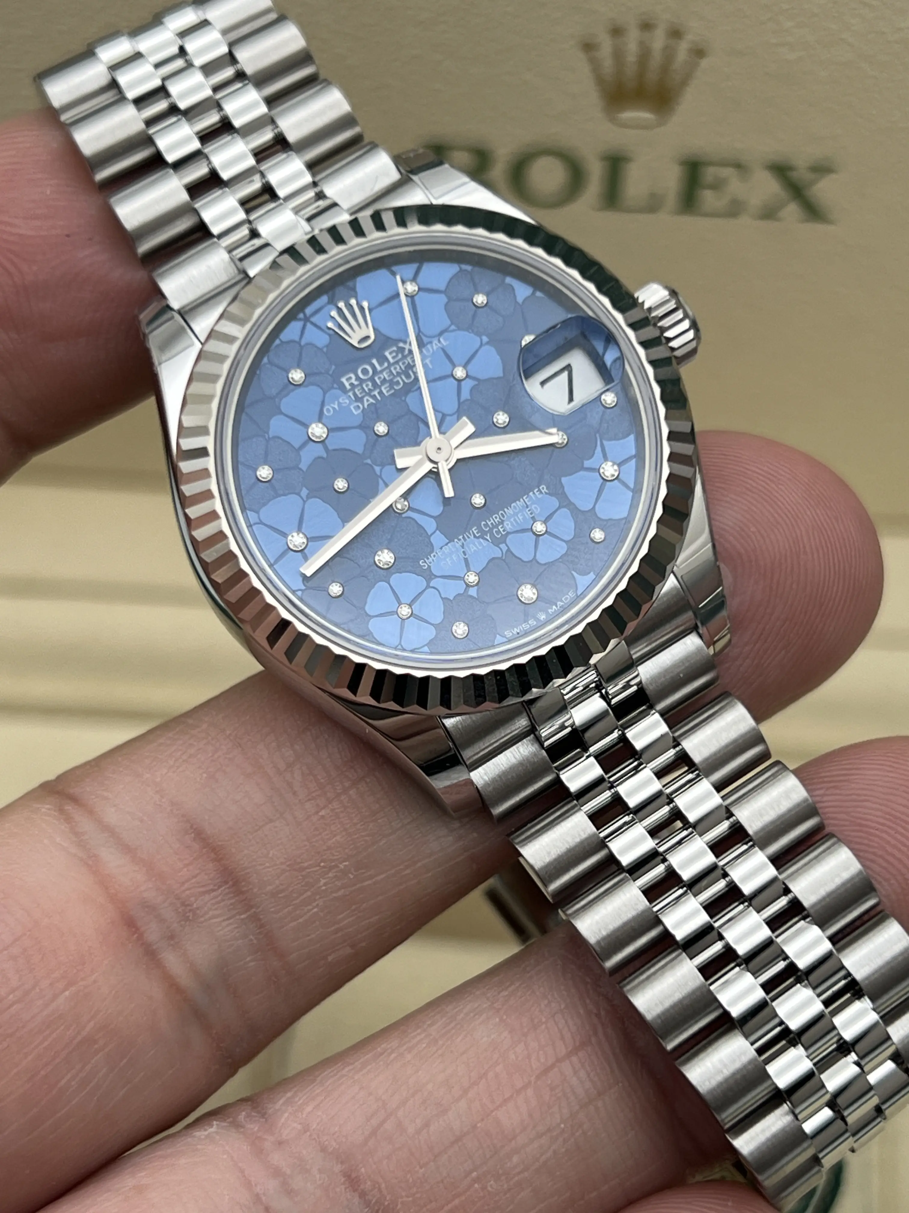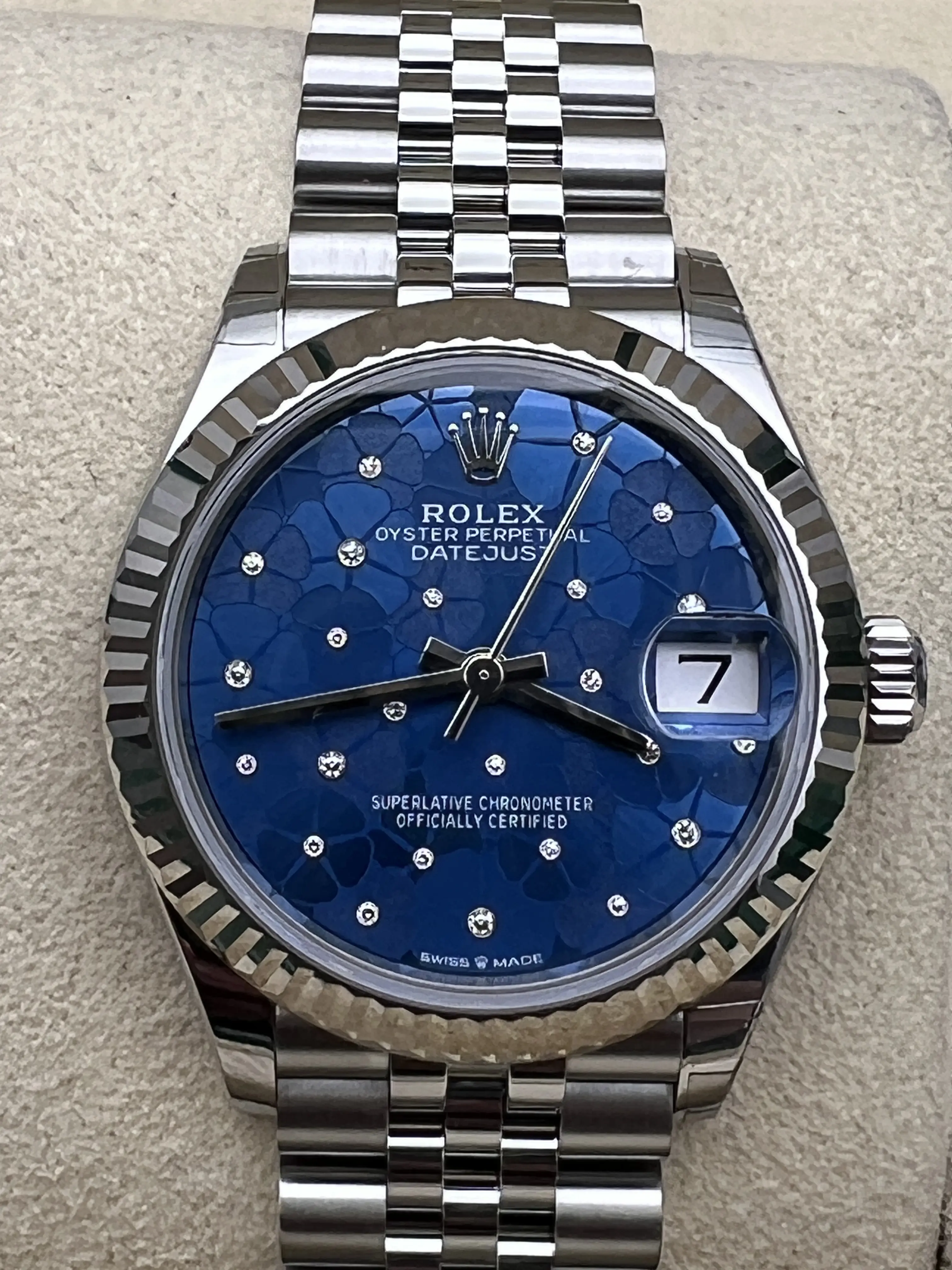 2024 Rolex Datejust 31 278274 18K Fluted Blue Floral Motif Diamond Jubilee B&P