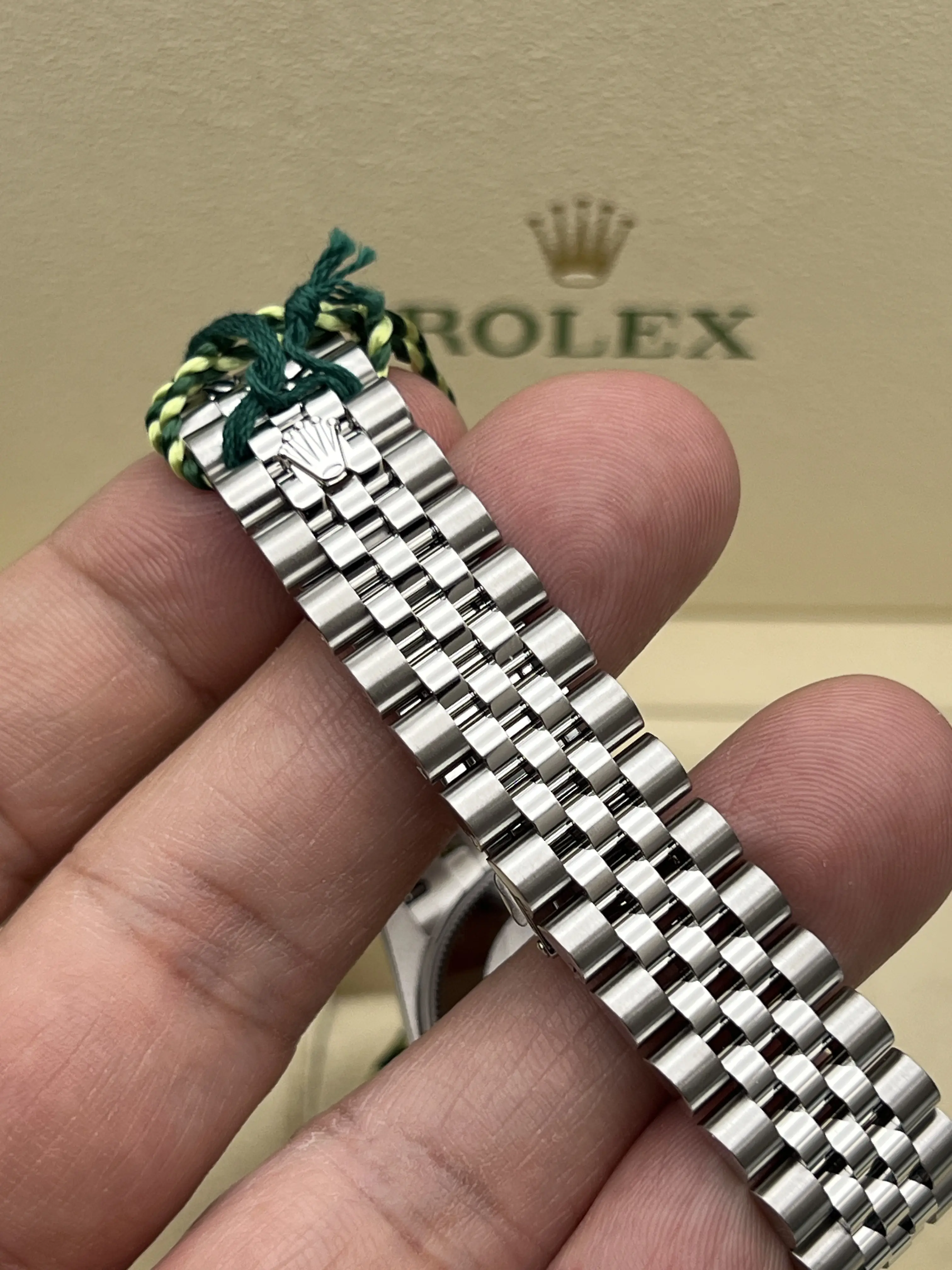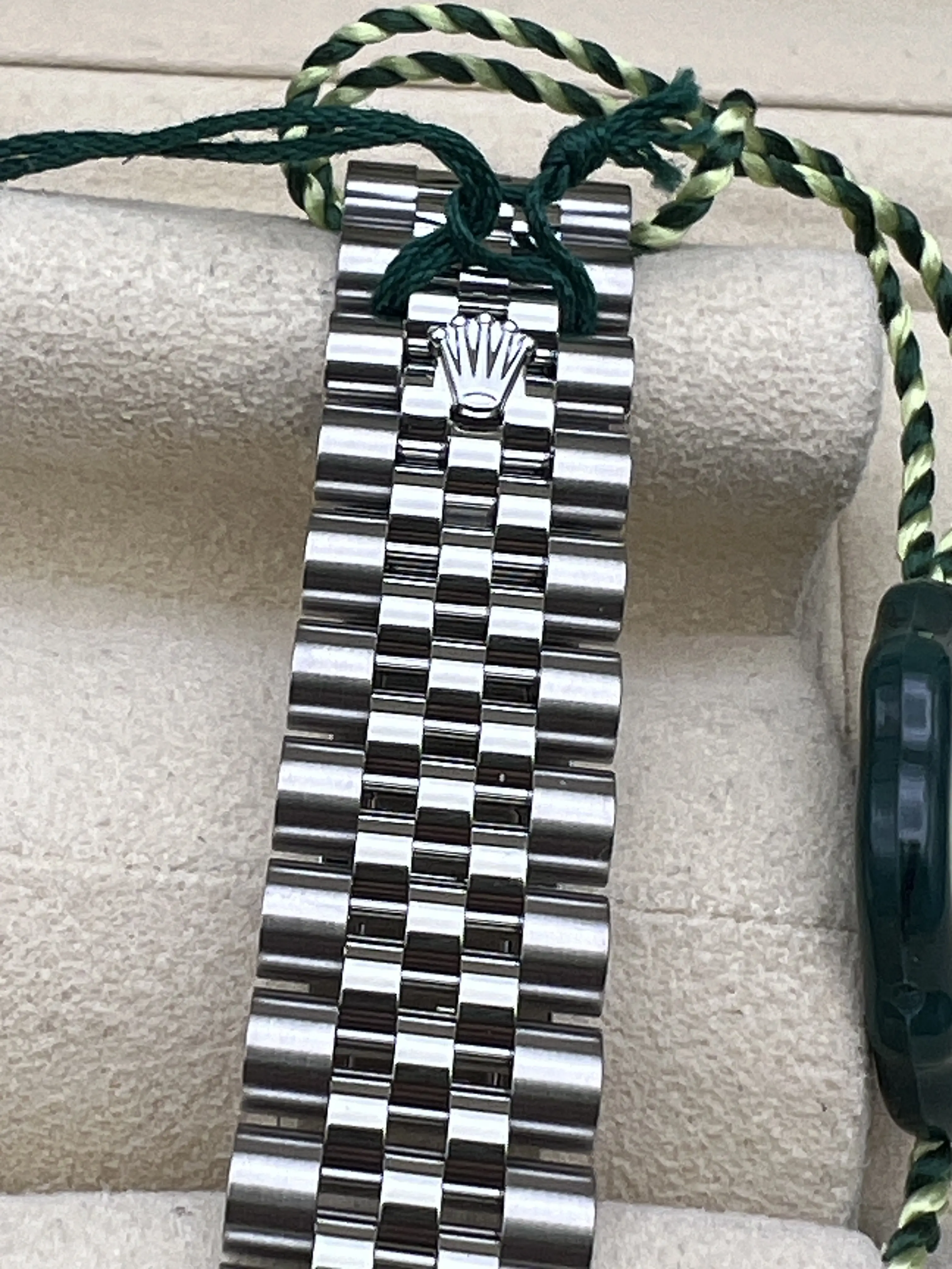 New Unworn, Rolex Datejust 31mm on a stainless steel Jubilee bracelet. 18K White Gold Fluted Bezel, Factory Blue Floral Diamond dial. The stunning Azzurro Blue dial has flower motifs with the center set with a diamond. Very rare dial usually on special order with a long wait. Watch comes Complete with Box, Papers, Manuals & Hangtags. 5 year Rolex warranty. The watch is unworn but as is common with most new watches, especially high polished steel or precious metal watches there will be some signs of handling on case sides, case backs, bracelets and/or buckles. It will also go through an added layer of shipment and authentication with additional handling whilst being inspected. These marks are normal and expected even with brand new watches once they are unpacked from their protective cases and stickers from the manufacturer.
