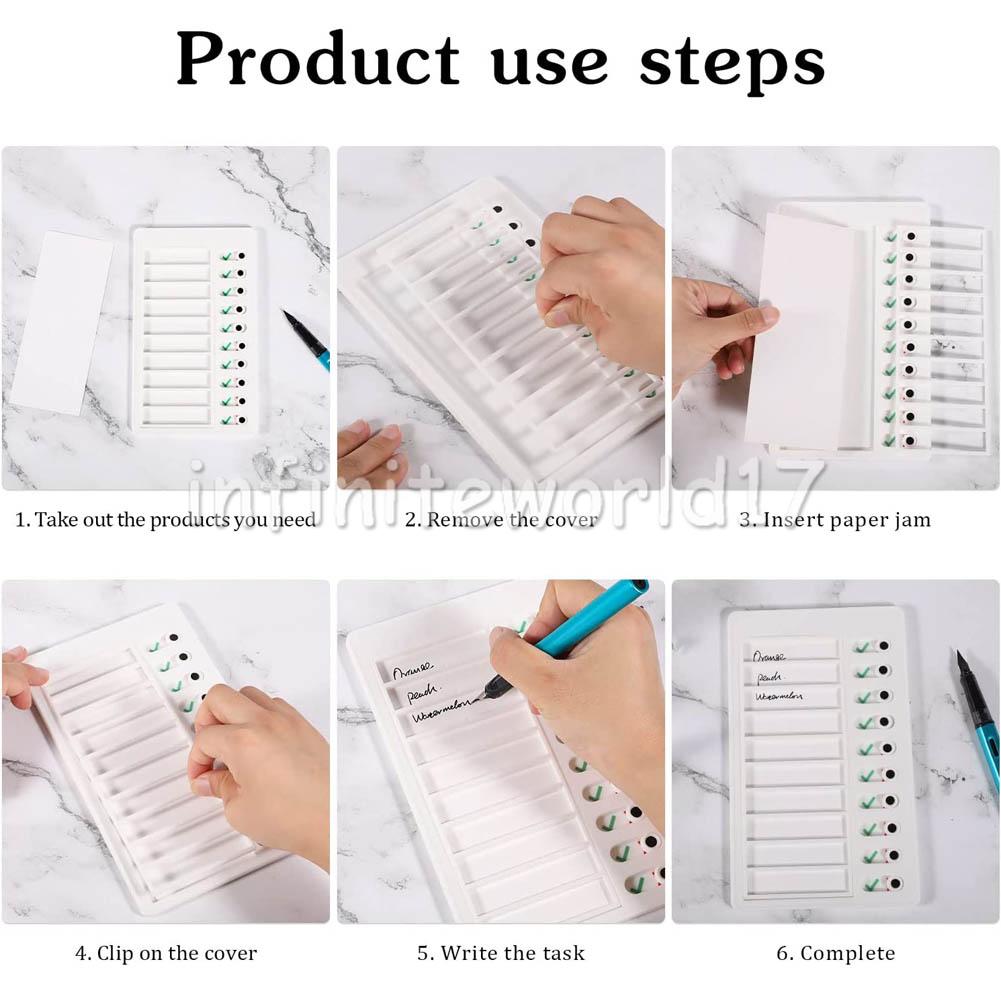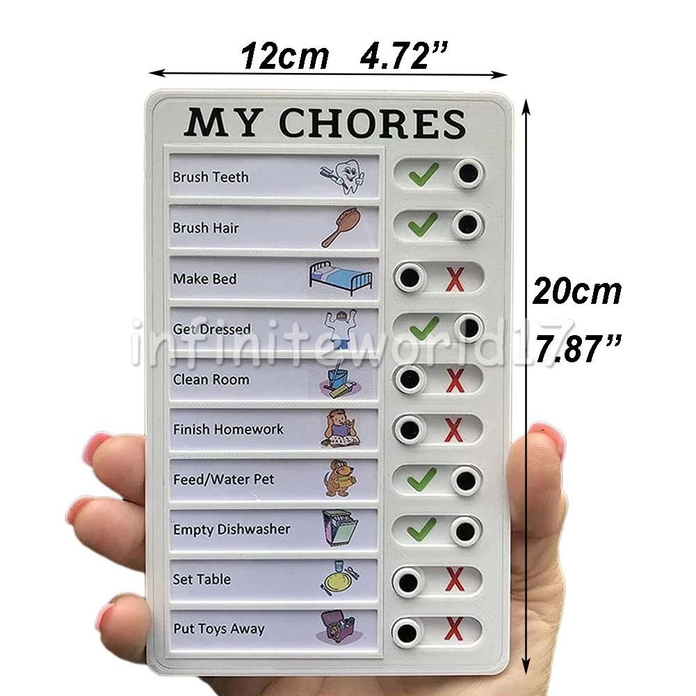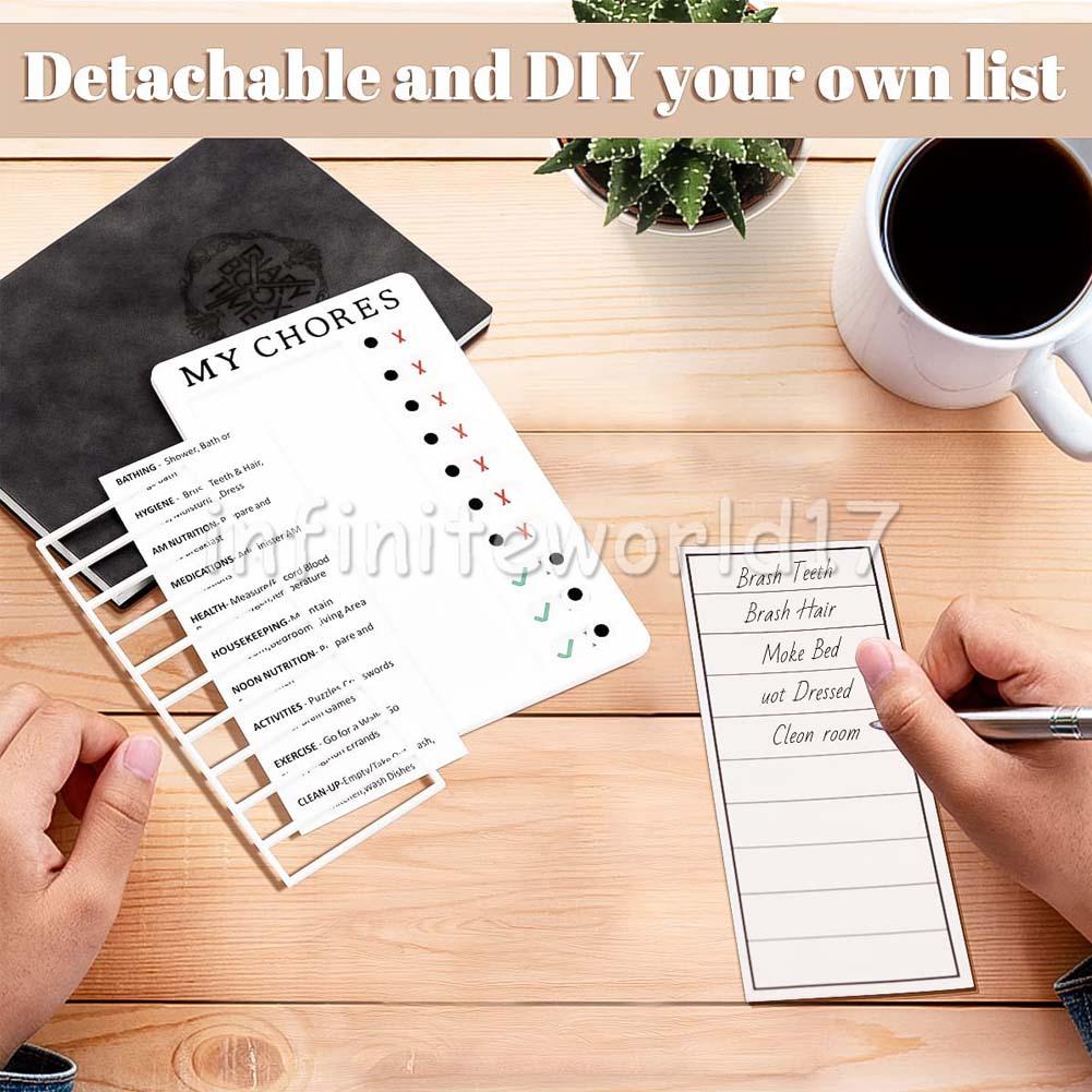 Feature: 1.Checklist , Reminds you to do daily chores 2.Track and orgenize chores - responsibilities -easily for one day 3.Multiuse! Can be a menu board or Planner, To Do List, Weekly Planner 3. Anything than needs to be tracked 4.FUN and Easy to use for kids and parents Specification: Item Name: Chores Checklist/Elder Care Checklist Size: 20 x 12cm Material: high quality Memo plastic board Colour: As the picture shows Product include: 2X MY Checklist 10X Blank papers