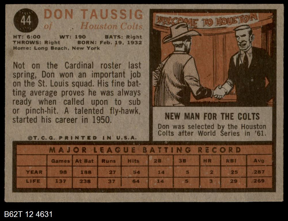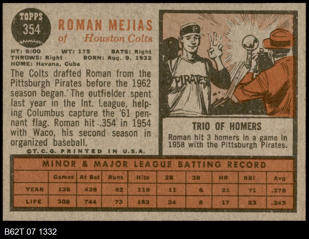 This 1962 Topps Houston Colt 45s Team Set contains the 1962 Topps Colt 45s baseball cards and makes a great gift for any Colt 45s fan. ?With an inventory of over 20,000 team sets, Dean's Cards has Team Sets & Near Team Sets for just about every team, in multiple conditions, for all sports, for most major sets issued between 1909 and 1979.