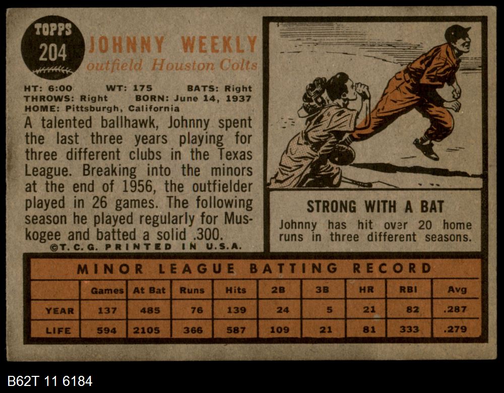 The 1962 Topps High Numbered Cards, begin with card #523 and contain some very expensive short-printed cards, whom quite often players that no one has ever heard of. The cards in the 1962 Topps Rookie Parade subset, which includes cards #591 to #598, are NOT included in standard team sets. The Rookie Parade cards each have five players, from multiple teams and can be purchased separately. These cards are very expensive and not considered part of a standard 1962 Topps Team Set.