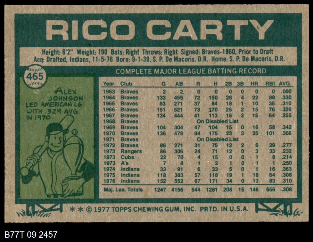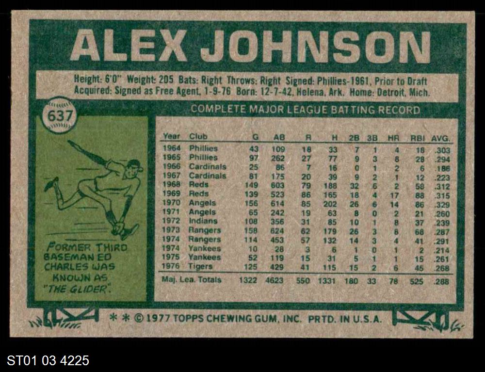 | 1977 Topps #637 Alex Johnson | 4 - VG/EX | Front | Back |
