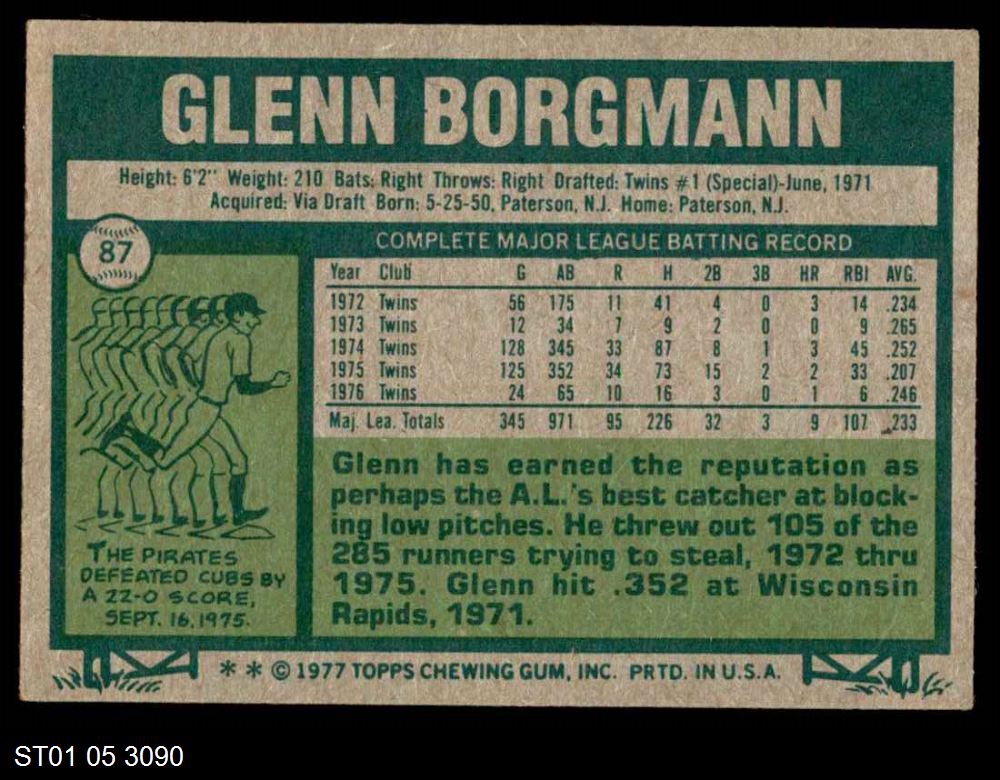 | 1977 Topps #87 Glenn Borgmann | 4 - VG/EX | Front | Back |