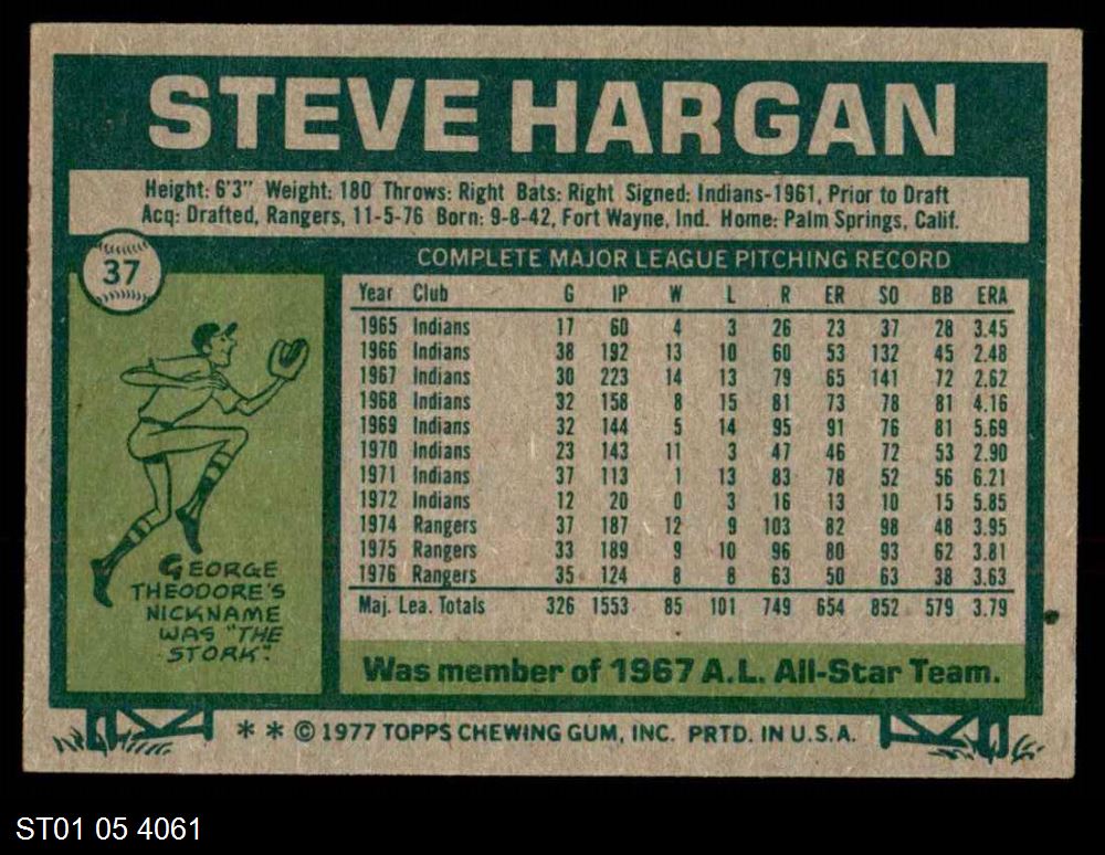 | 1977 Topps #37 Steve Hargan | 3 - VG | Front | Back |