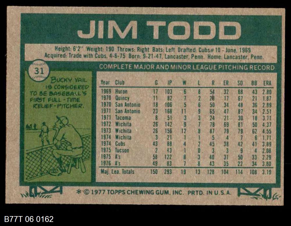 | 1977 Topps #31 Jim Todd | 5 - EX | Front | Back |
