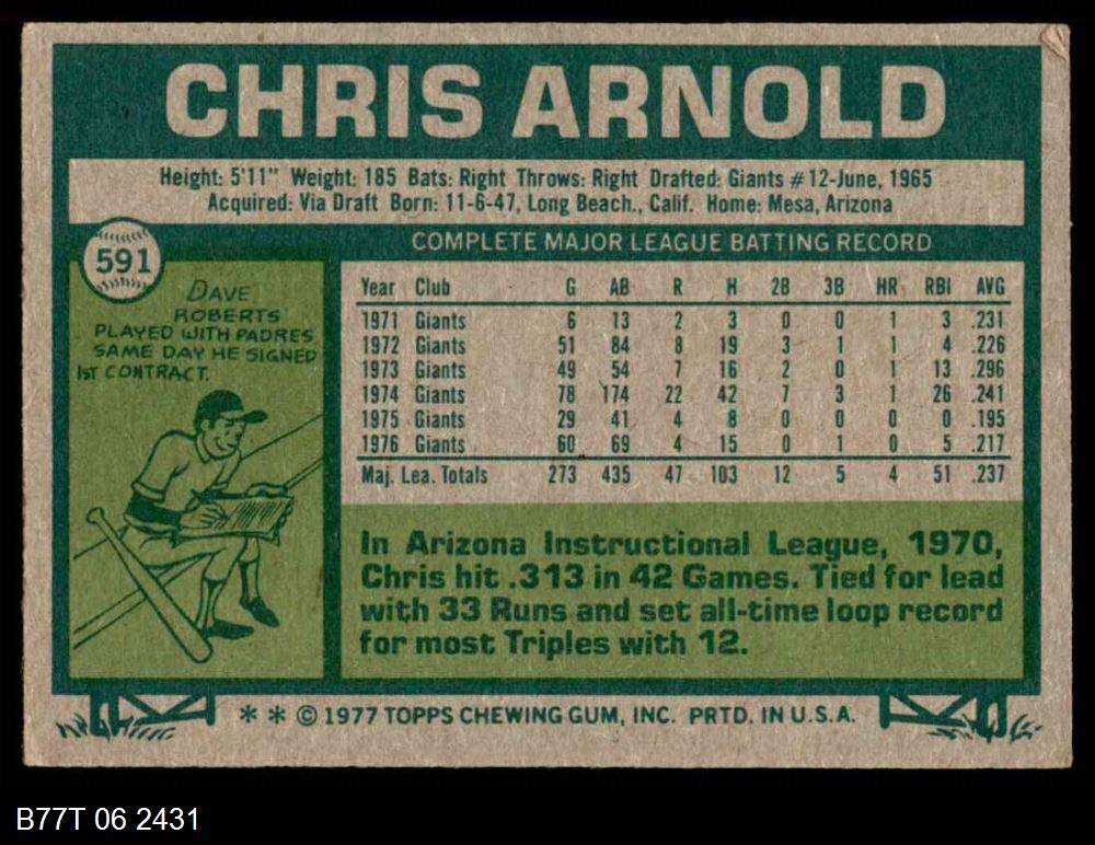 | 1977 Topps #591 Chris Arnold | 2 - GOOD | Front | Back |