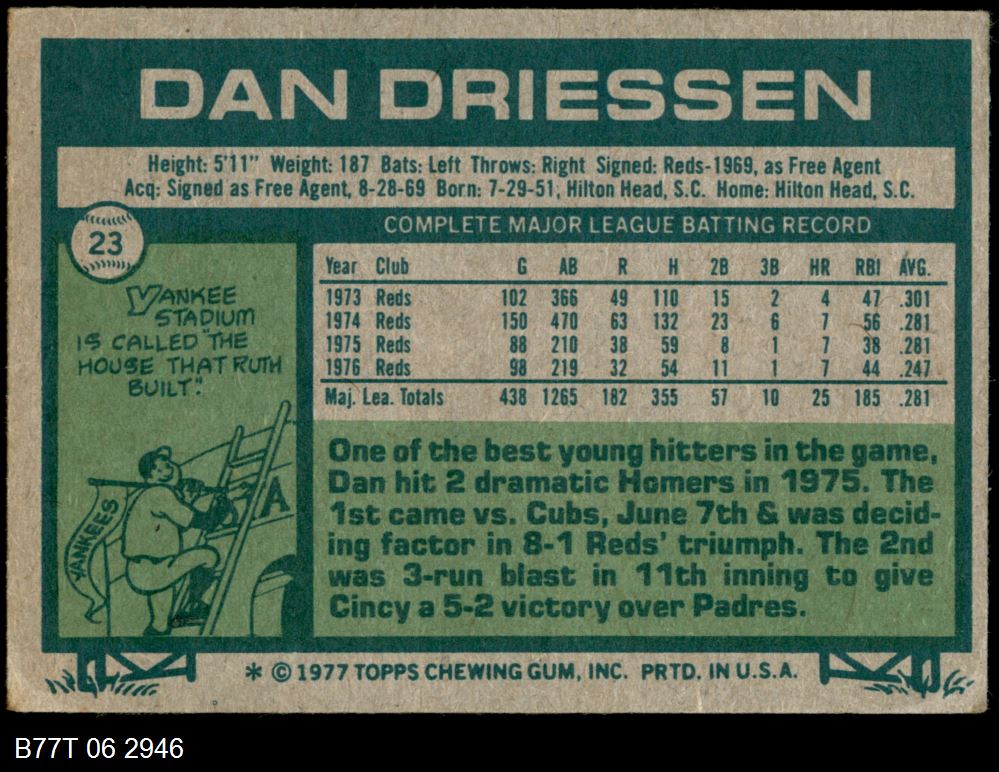 | 1977 Topps #23 Dan Driessen | 2 - GOOD | Front | Back |