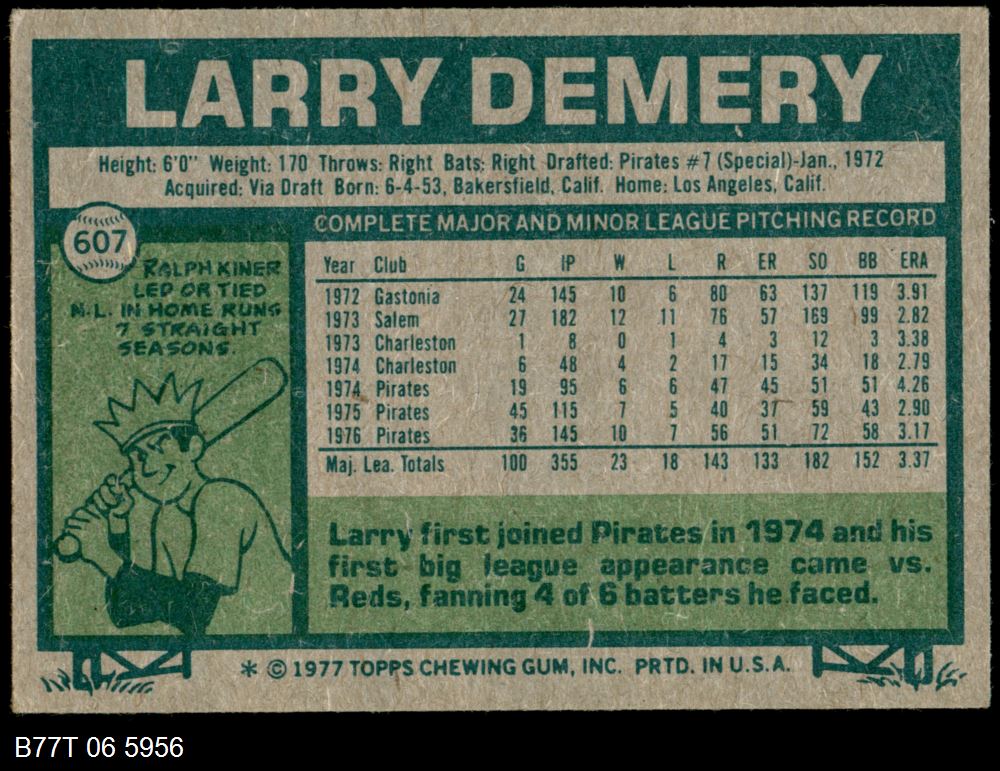 | 1977 Topps #607 Larry Demery | 3 - VG | Front | Back |