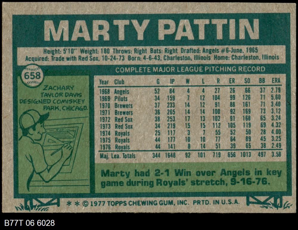 | 1977 Topps #658 Marty Pattin | 4 - VG/EX | Front | Back |