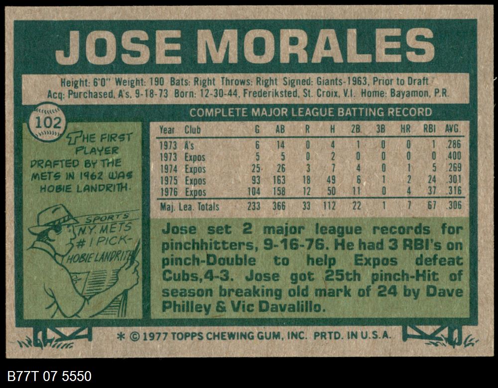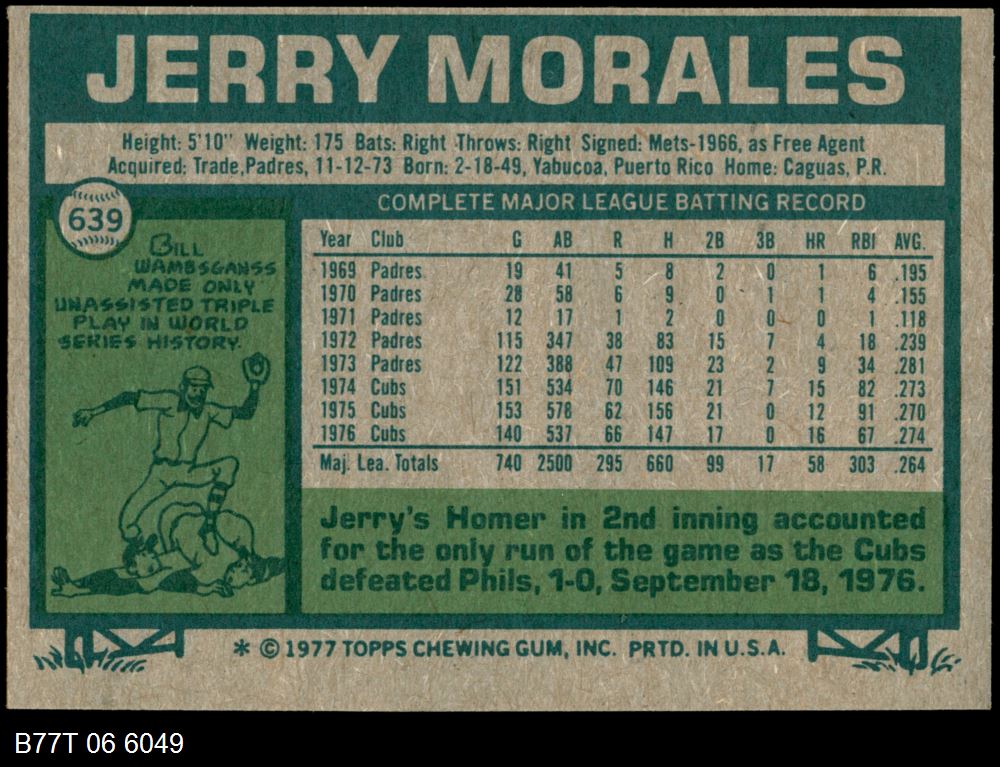 | 1977 Topps #639 Jerry Morales | 4 - VG/EX | Front | Back |