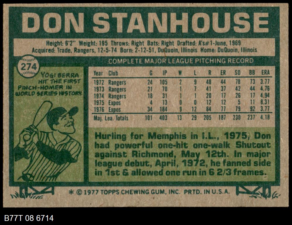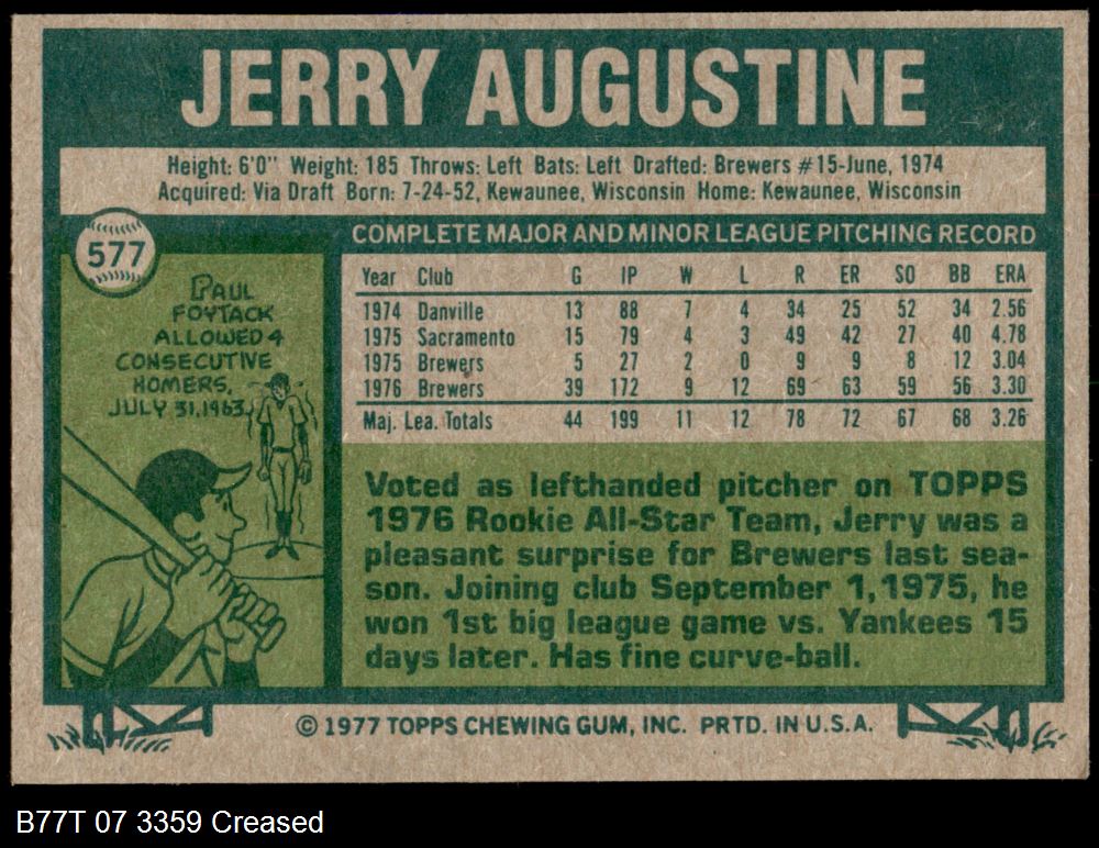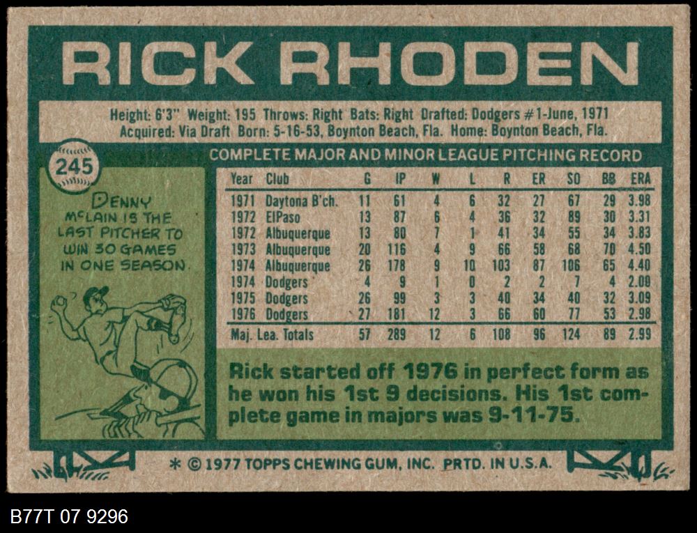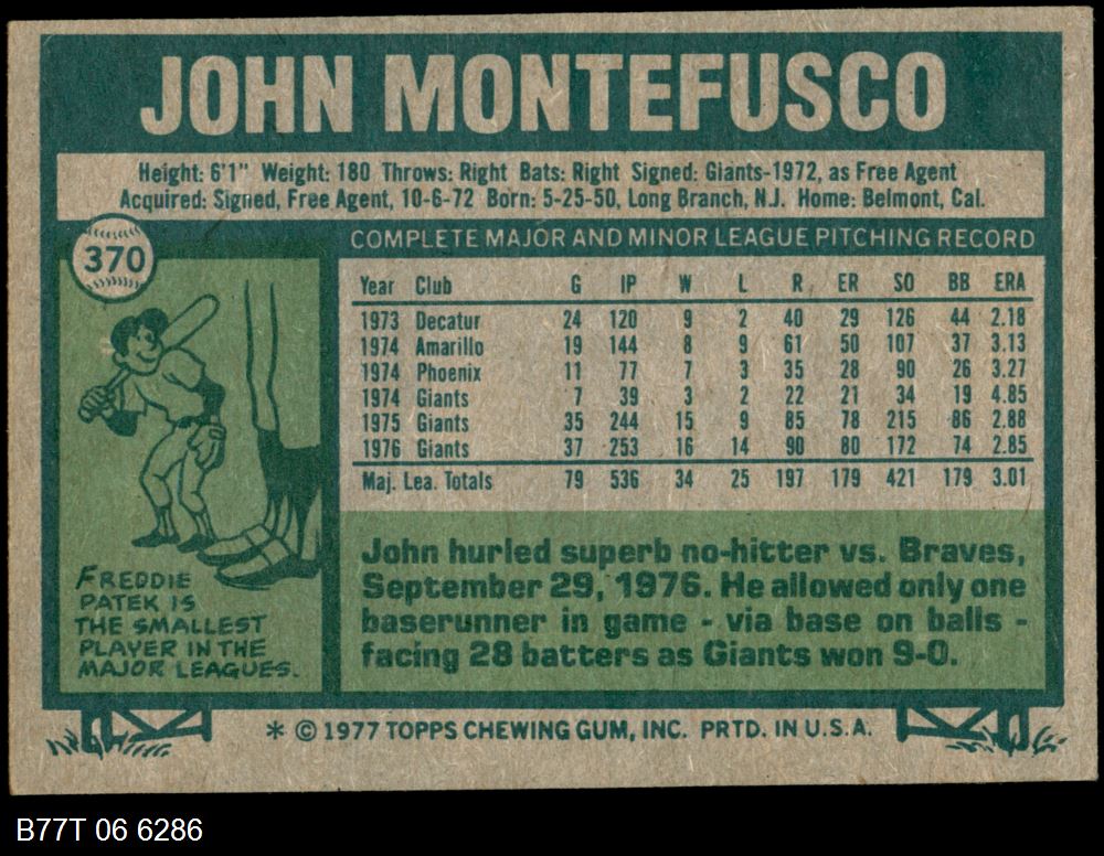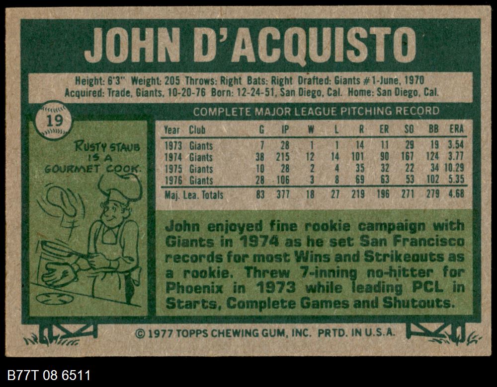 | 1977 Topps #19 John D'Acquisto | 4 - VG/EX | Front | Back |