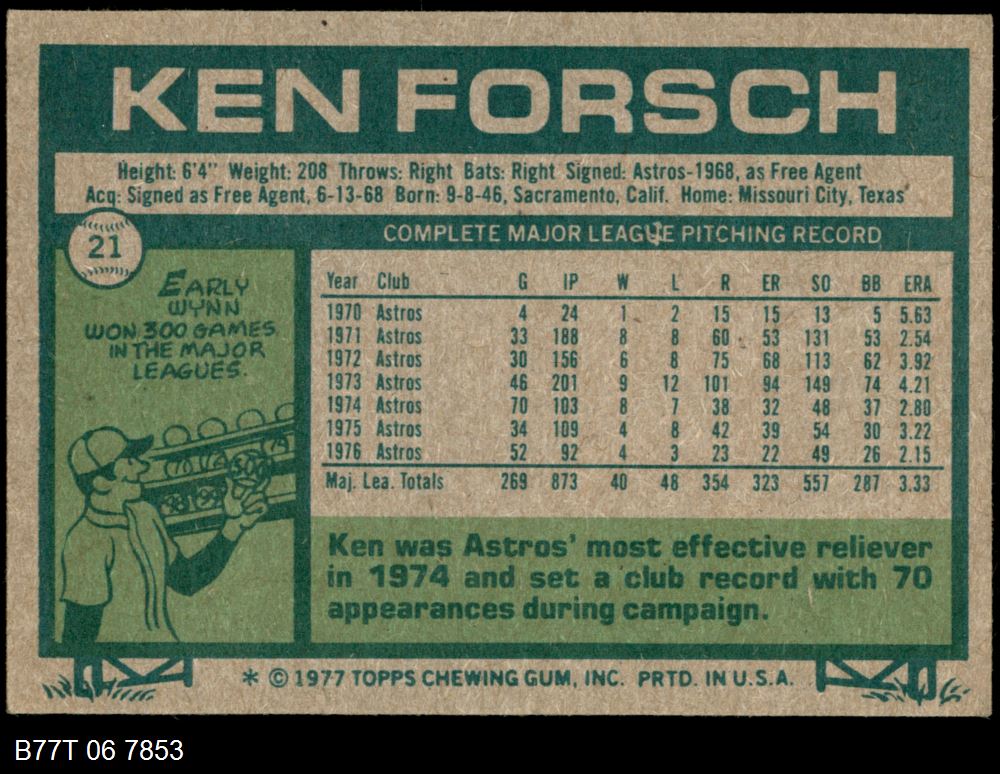 | 1977 Topps #21 Ken Forsch | 5 - EX | Front | Back |