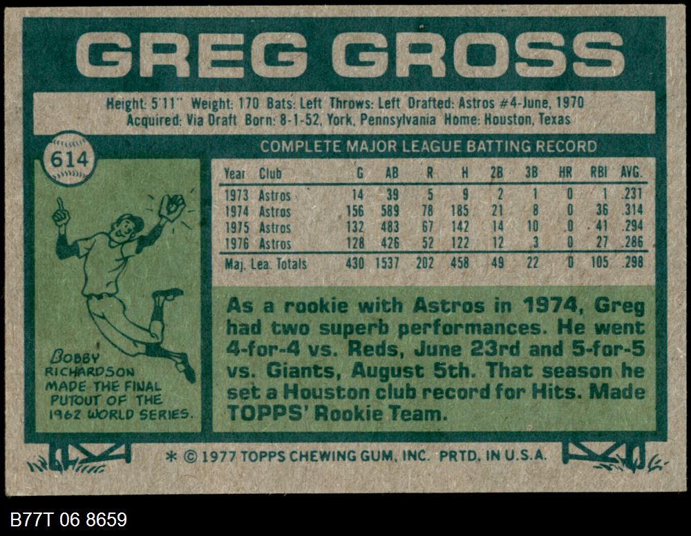 | 1977 Topps #614 Greg Gross | 4 - VG/EX | Front | Back |