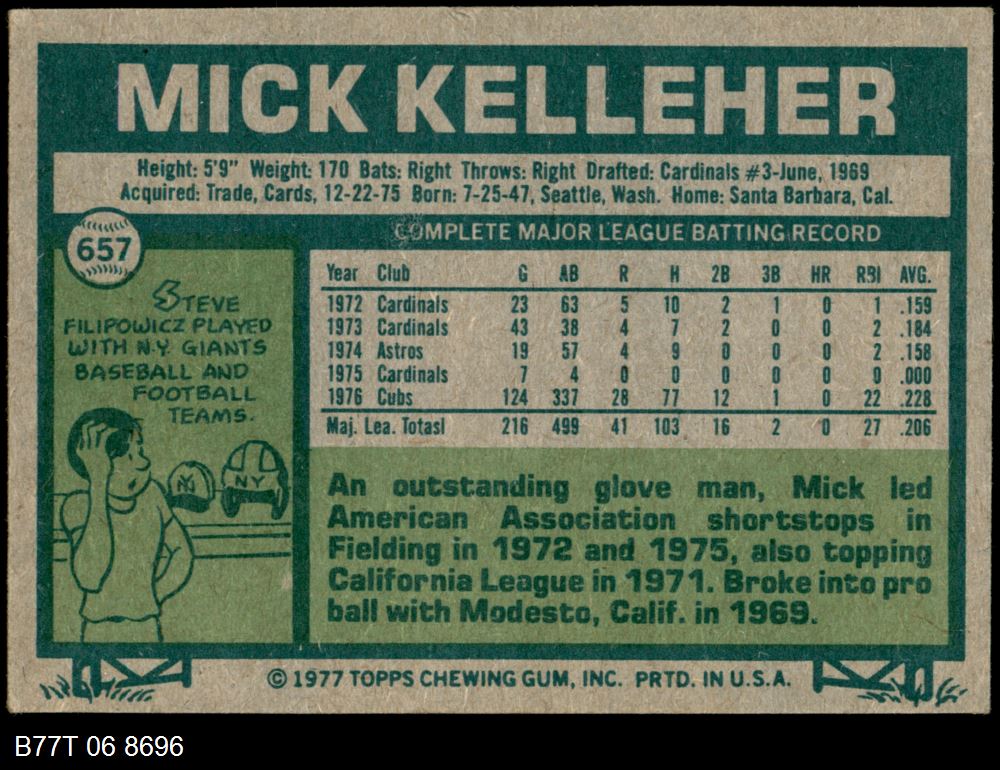 | 1977 Topps #657 Mick Kelleher | 4 - VG/EX | Front | Back |