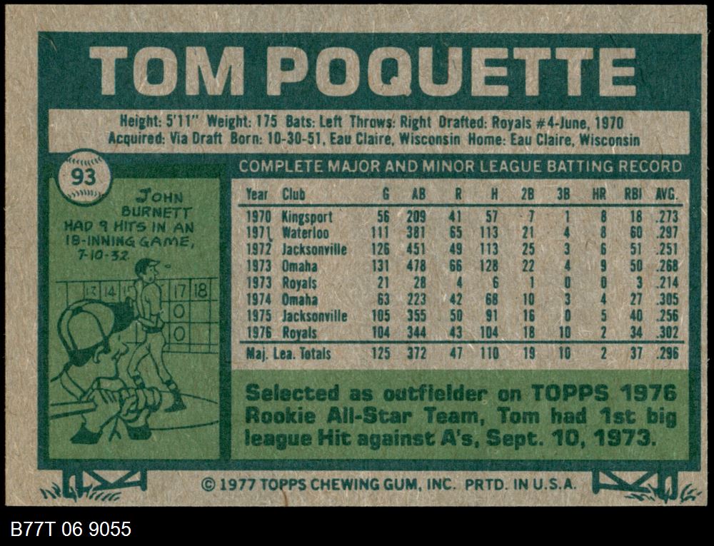 | 1977 Topps #93 Tom Poquette | 3 - VG | Front | Back |