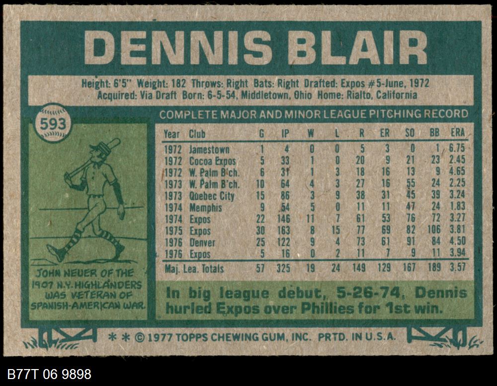 | 1977 Topps #593 Dennis Blair | 4 - VG/EX | Front | Back |