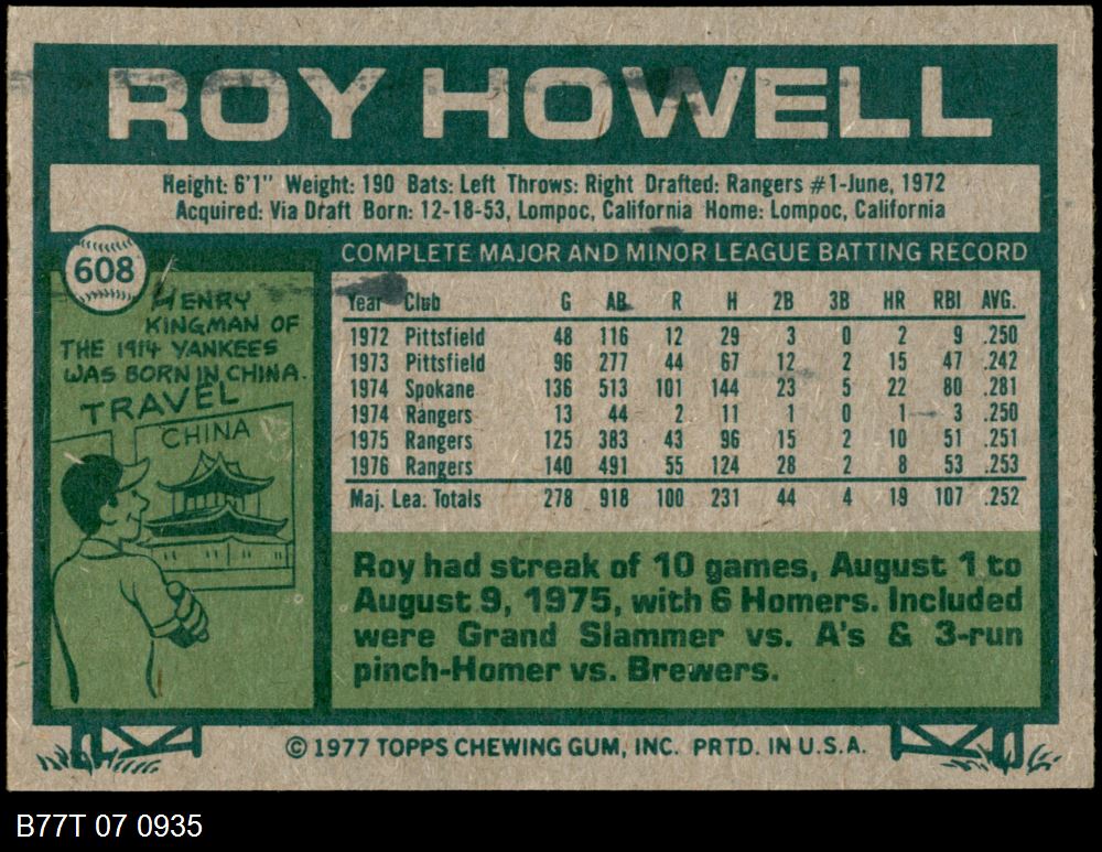 | 1977 Topps #608 Roy Howell | 4 - VG/EX | Front | Back |