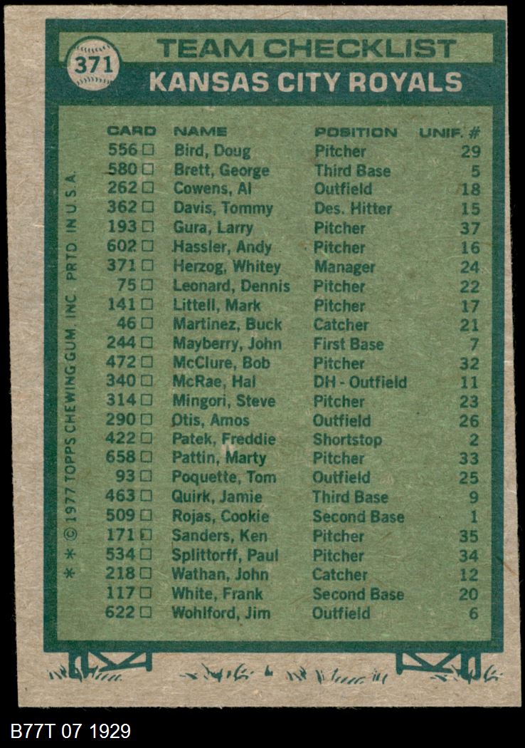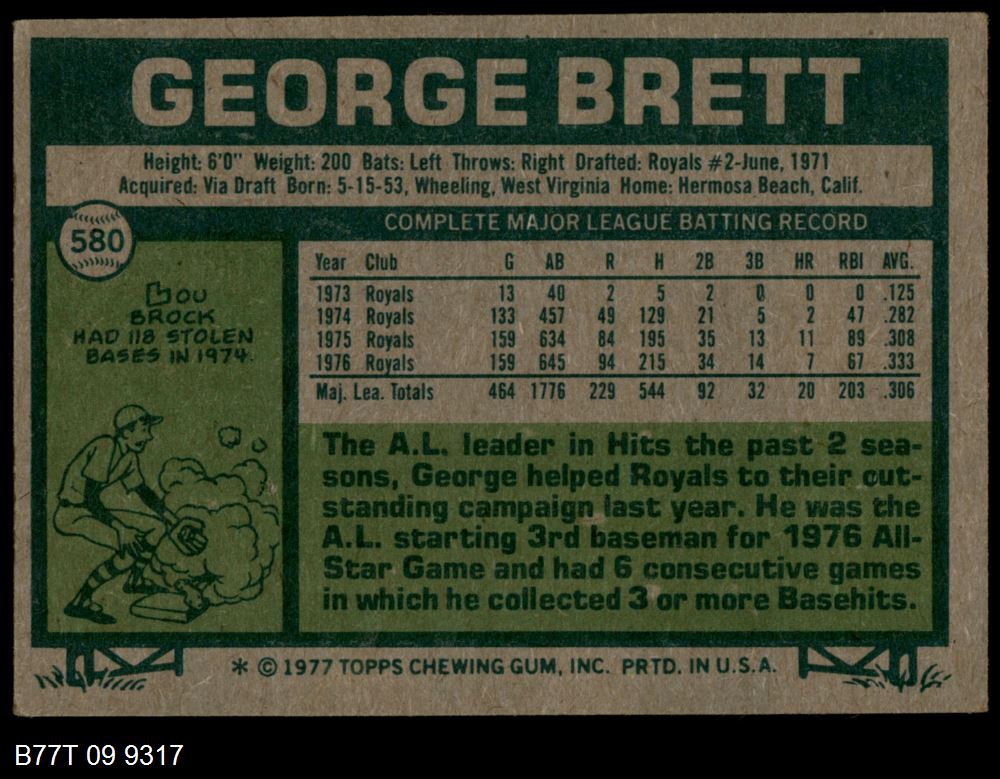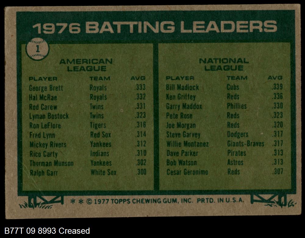 | 1977 Topps #1 - George Brett / Bill Madlock Batting Leaders | 2 - GOOD | Front | Back |