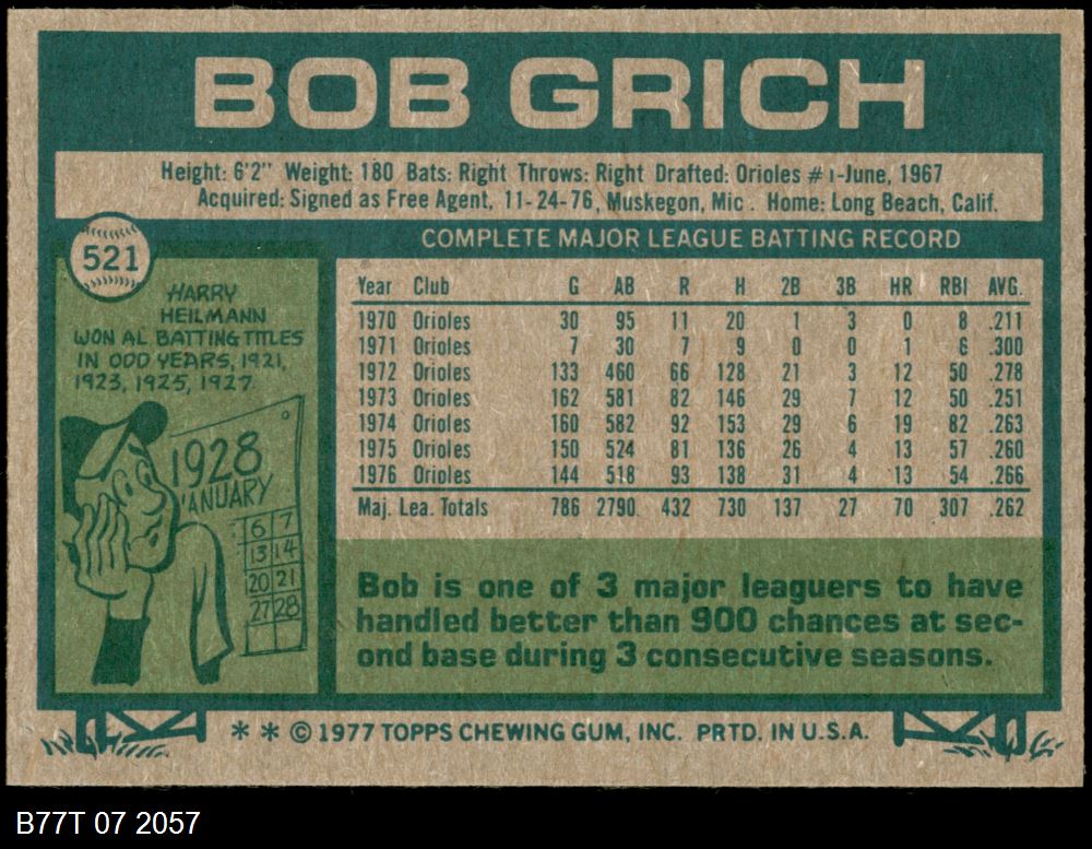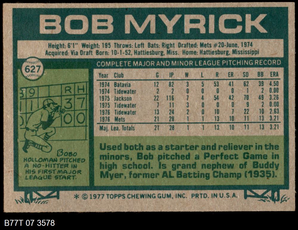 | 1977 Topps #627 Bob Myrick | 5 - EX | Front | Back |