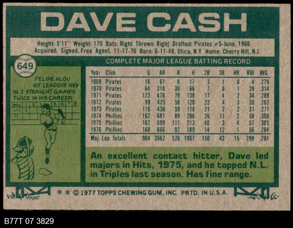 | 1977 Topps #649 Dave Cash | 4 - VG/EX | Front | Back |