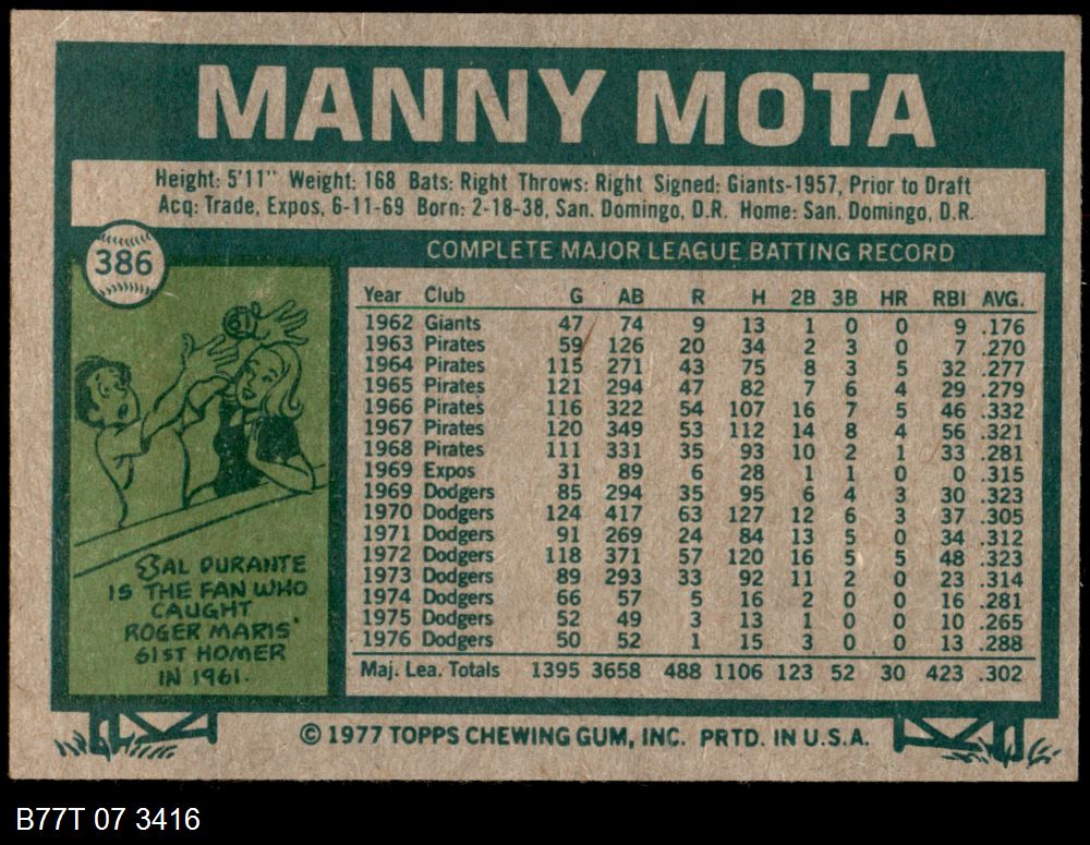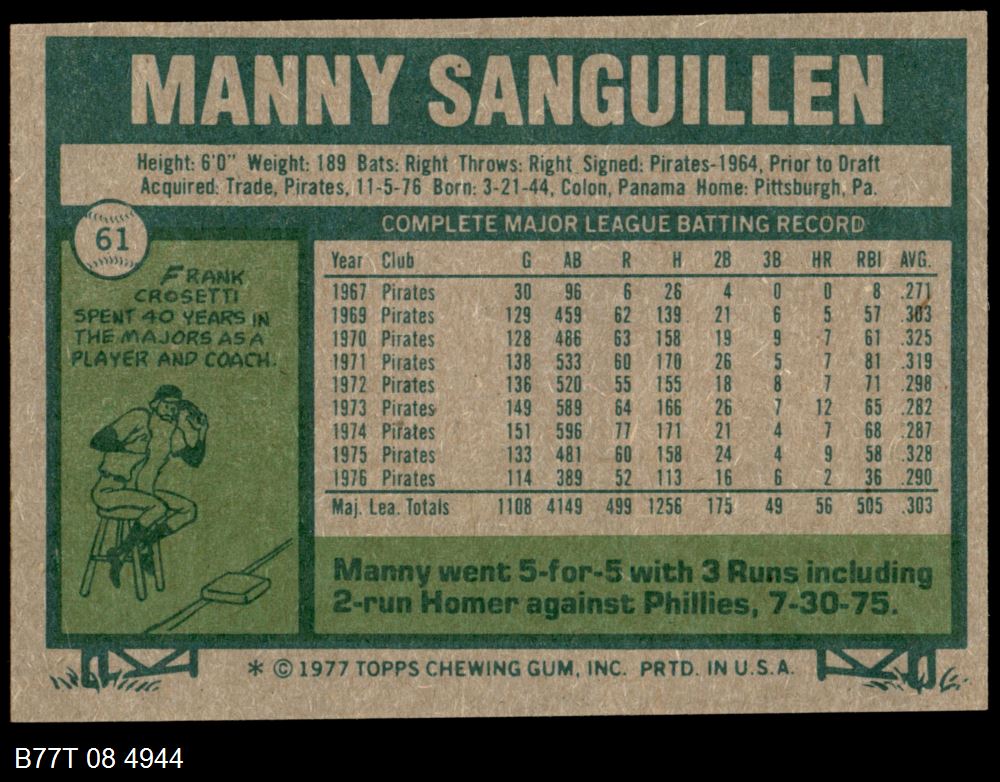 | 1977 Topps #61 Manny Sanguillen | 4 - VG/EX | Front | Back |