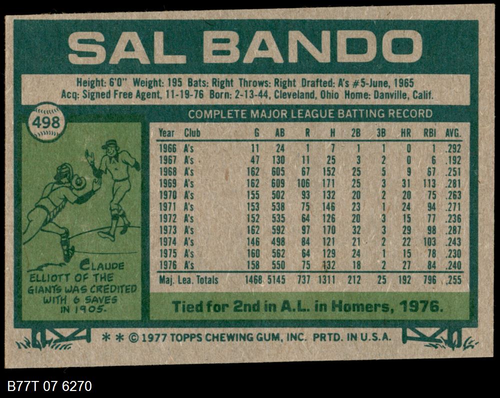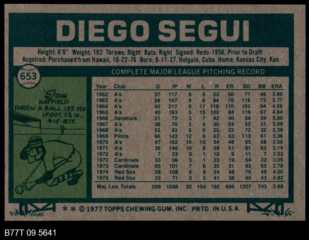 | 1977 Topps #653 Diego Segui | 6 - EX/MT | Front | Back |
