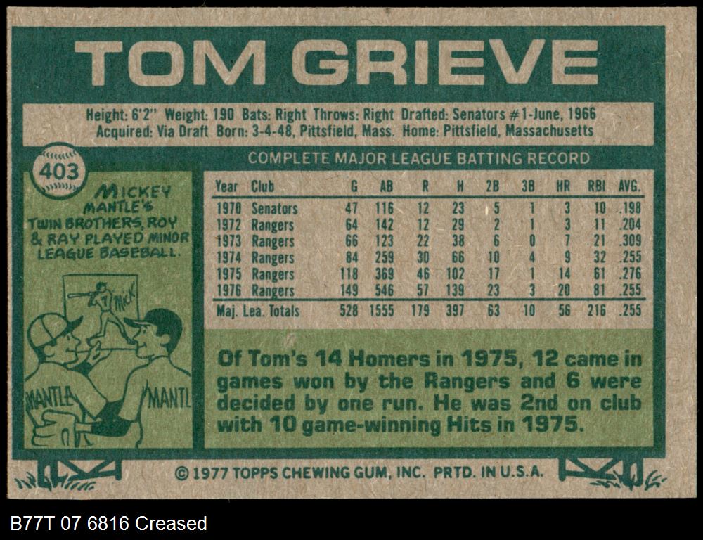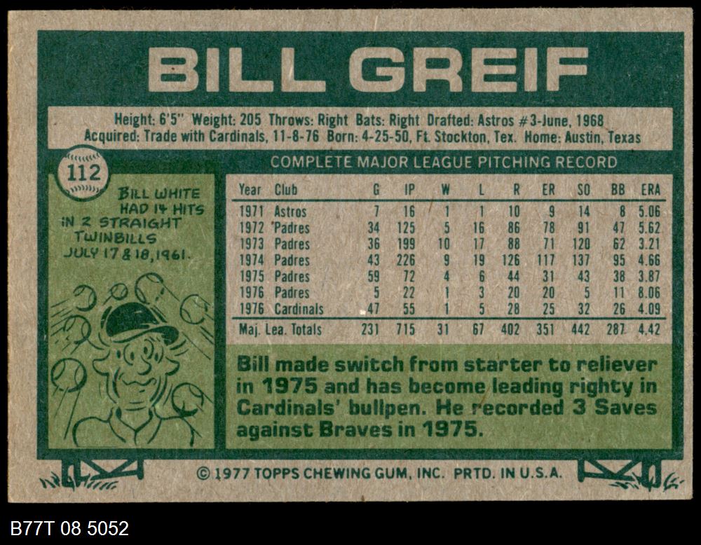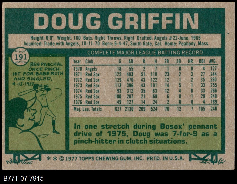 | 1977 Topps #39 Tom Griffin | 5 - EX | Front | Back |