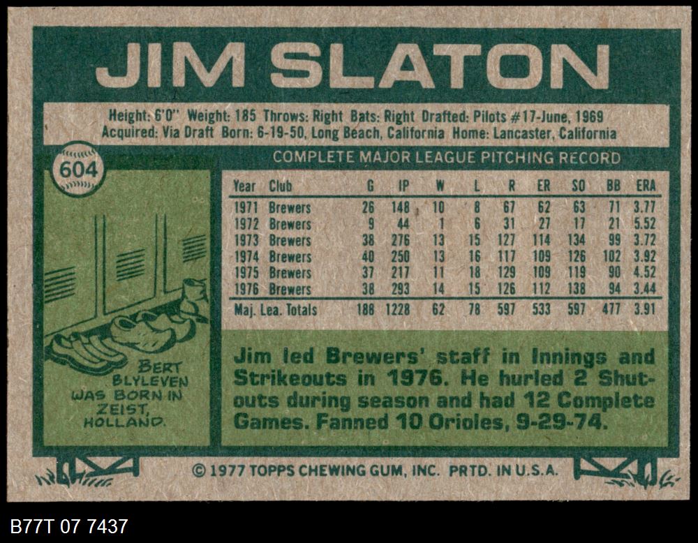 | 1977 Topps #604 Jim Slaton | 5 - EX | Front | Back |