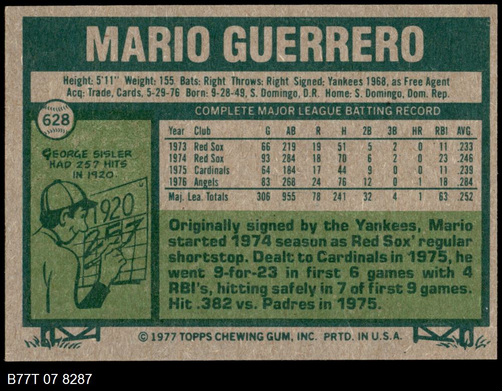 | 1977 Topps #628 Mario Guerrero | 5 - EX | Front | Back |