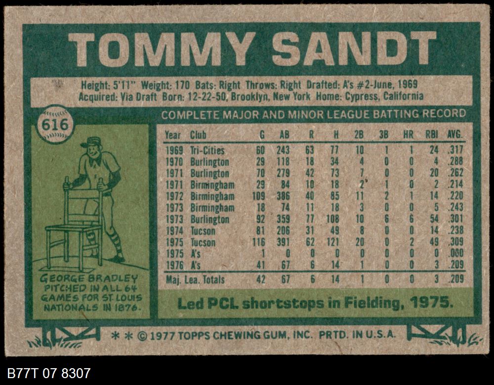 | 1977 Topps #616 Tommy Sandt | 3 - VG | Front | Back |