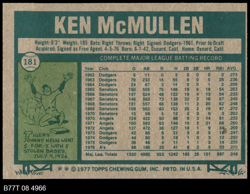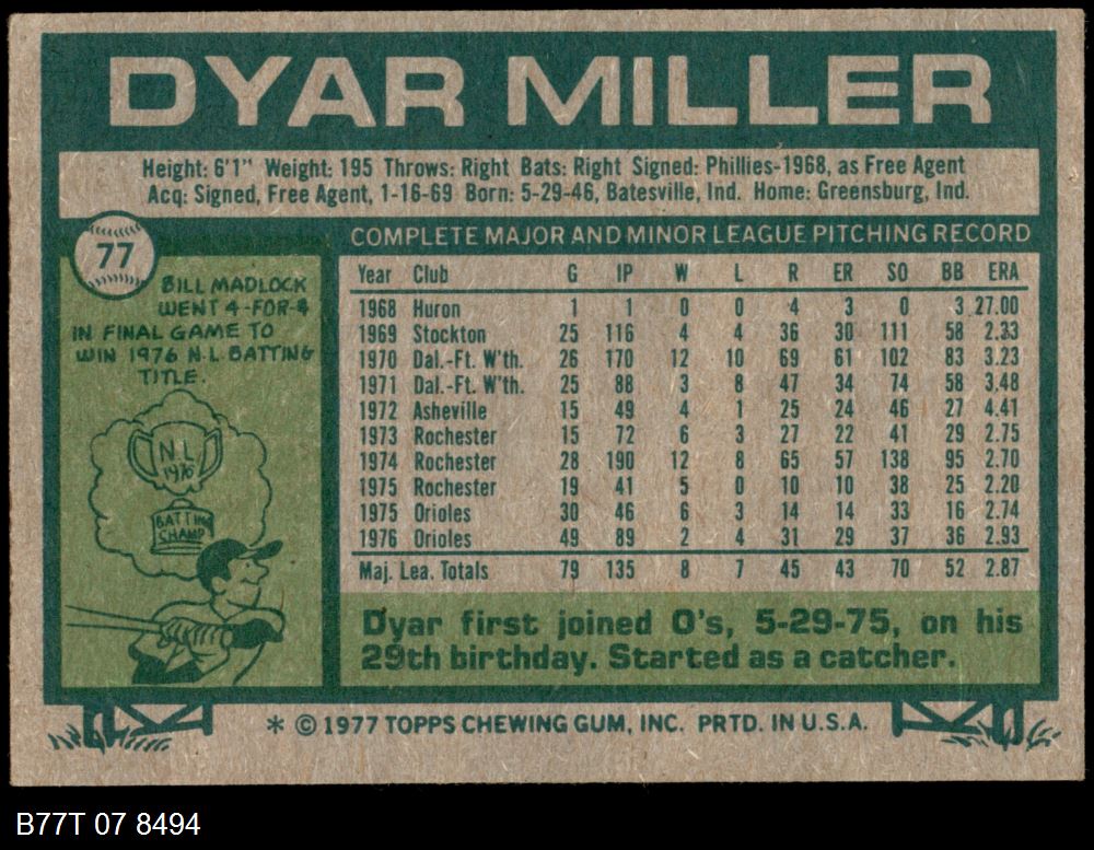 | 1977 Topps #77 Dyar Miller | 4 - VG/EX | Front | Back |