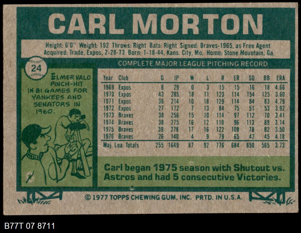 | 1977 Topps #24 Carl Morton | 4 - VG/EX | Front | Back |