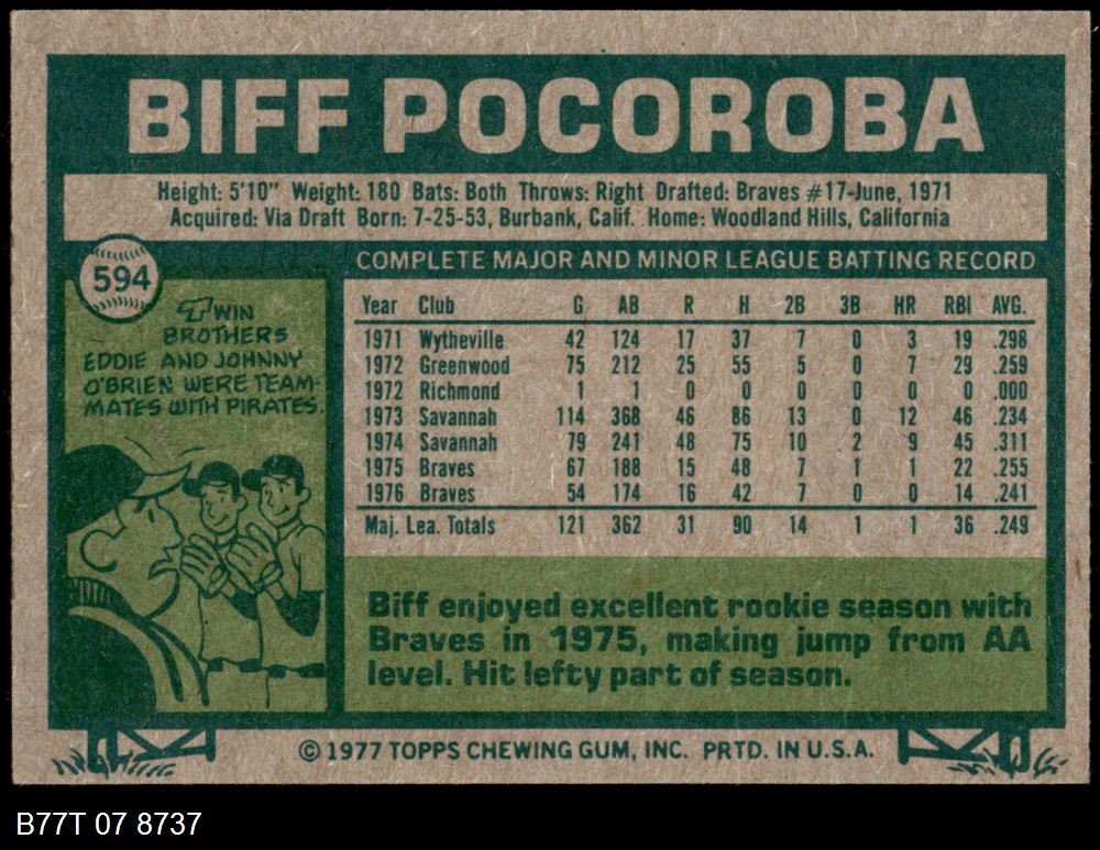 | 1977 Topps #594 Biff Pocoroba | 4 - VG/EX | Front | Back |