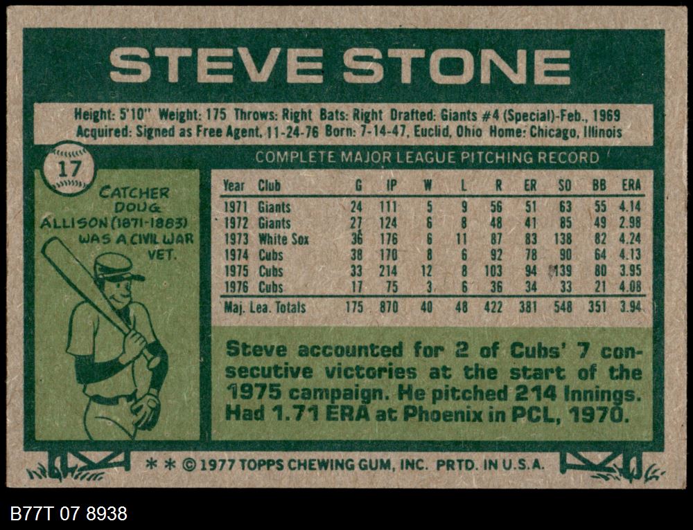| 1977 Topps #17 Steve Stone | 5 - EX | Front | Back |