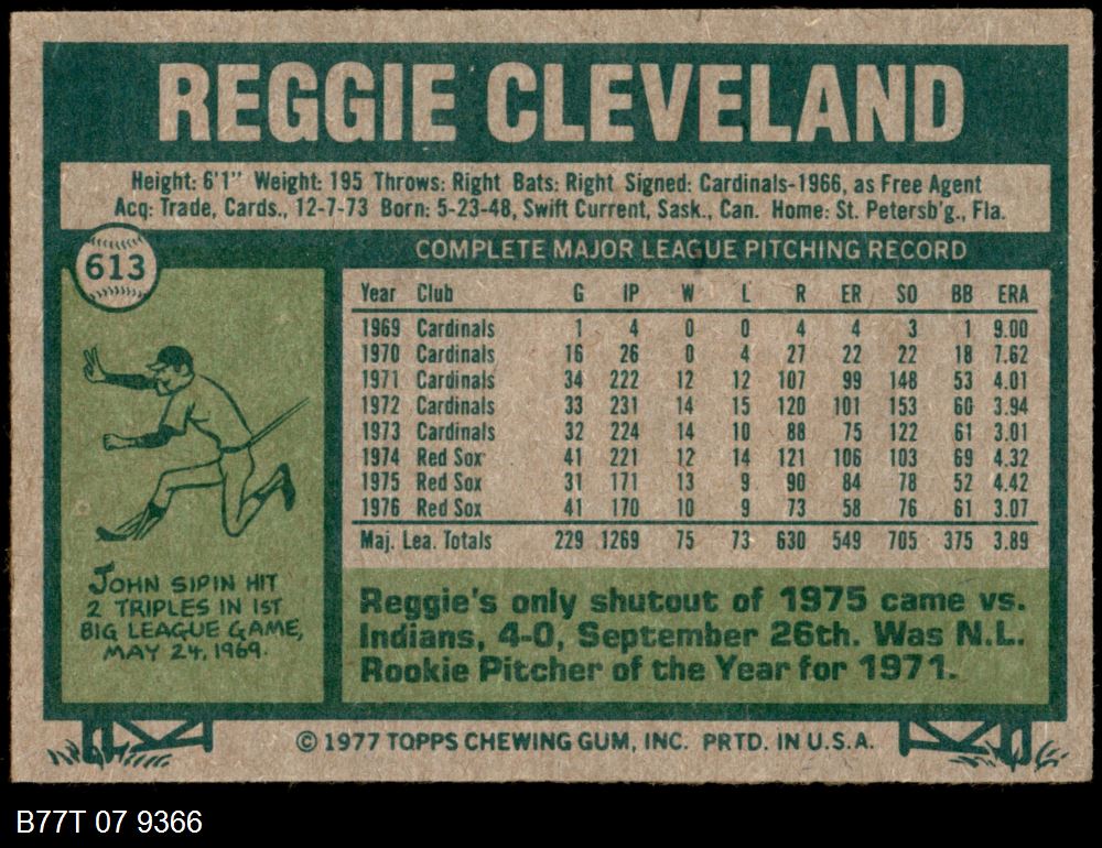 | 1977 Topps #613 Reggie Cleveland | 4 - VG/EX | Front | Back |