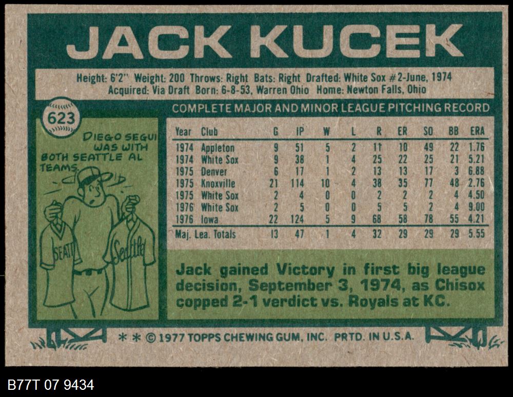 | 1977 Topps #623 Jack Kucek | 4 - VG/EX | Front | Back |