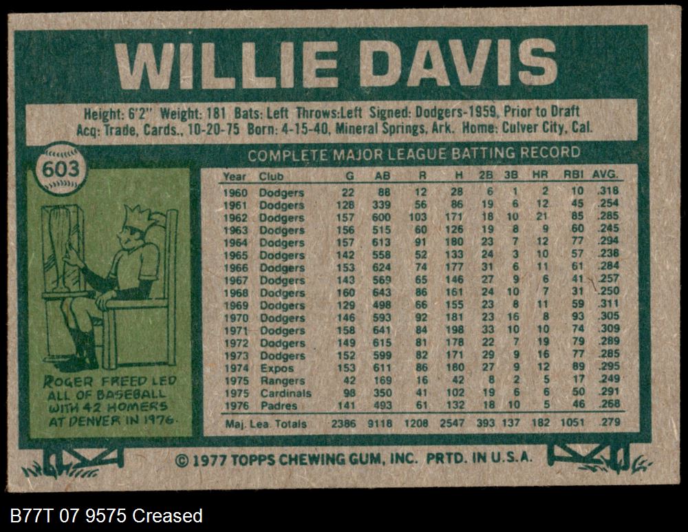 | 1977 Topps #603 Willie Davis | 3 - VG | Front | Back |