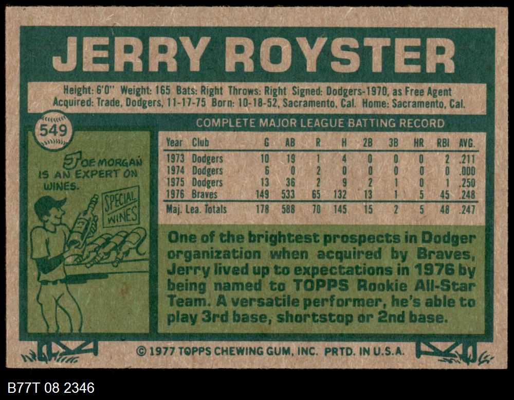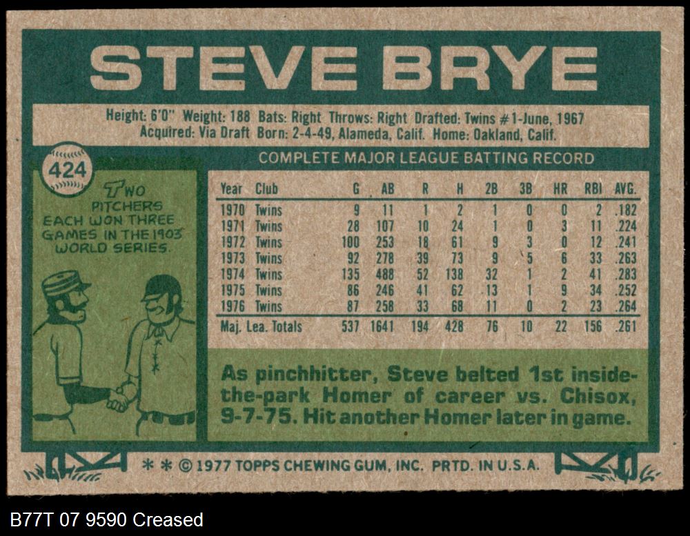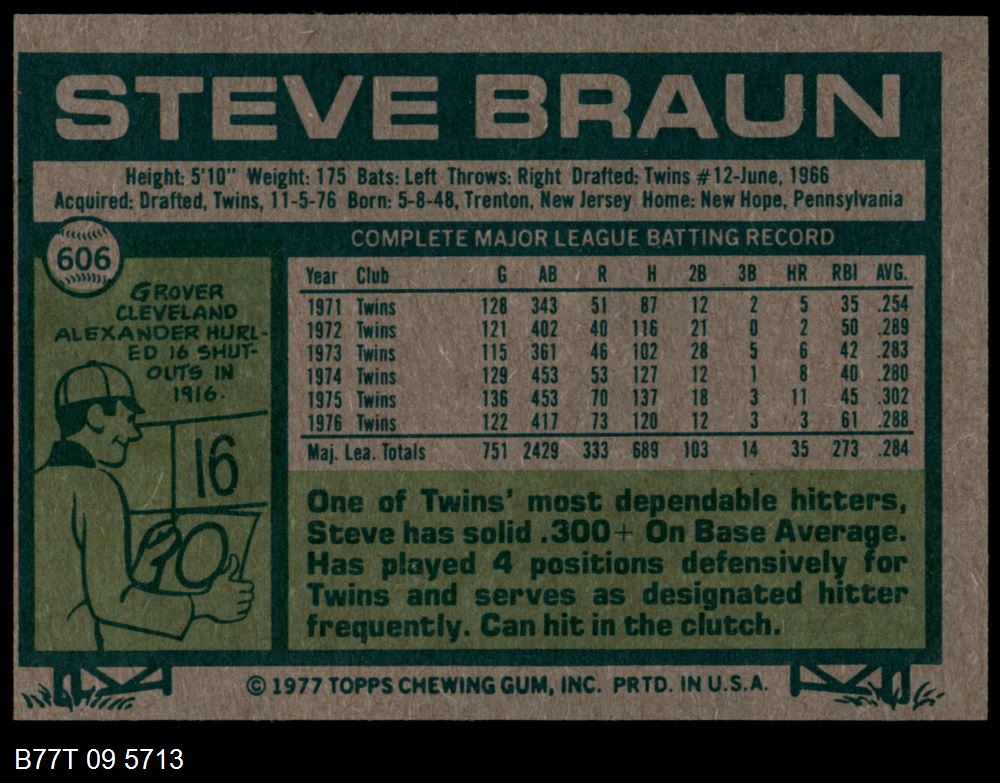 | 1977 Topps #606 Steve Braun | 5 - EX | Front | Back |