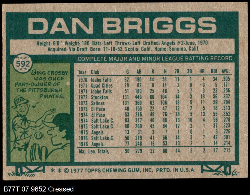 | 1977 Topps #592 Dan Briggs | 3 - VG | Front | Back |