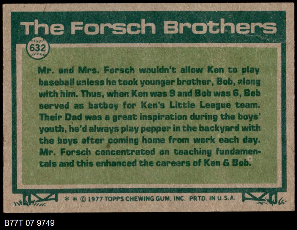 | 1977 Topps #632 - Bob Forsch / Ken Forsch Big League Brothers | 2 - GOOD | Front | Back |