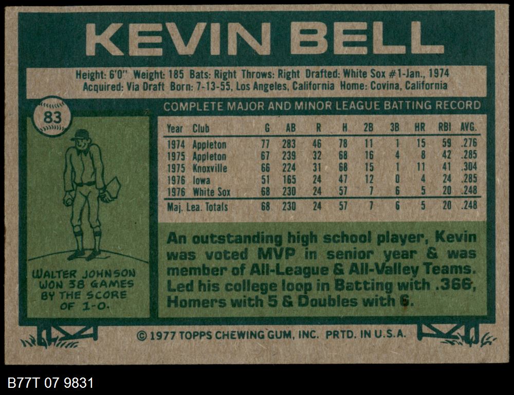 | 1977 Topps #83 Kevin Bell | 4 - VG/EX | Front | Back |